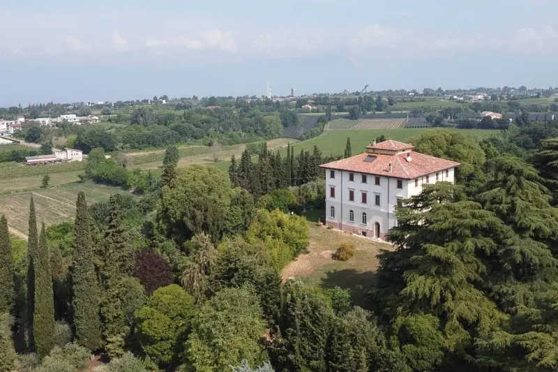 تقع فيلا بيفيلاكوا في موقع مرتفع فوق بحيرة غاردا وتطل على الضفة التابعة لفيرونا. تم تشييد هذا العقار حوالي عام 1880 على يد لورينزو ريسكالي، وهو أحد المساكن النبيلة التاريخية في شمال إيطاليا.