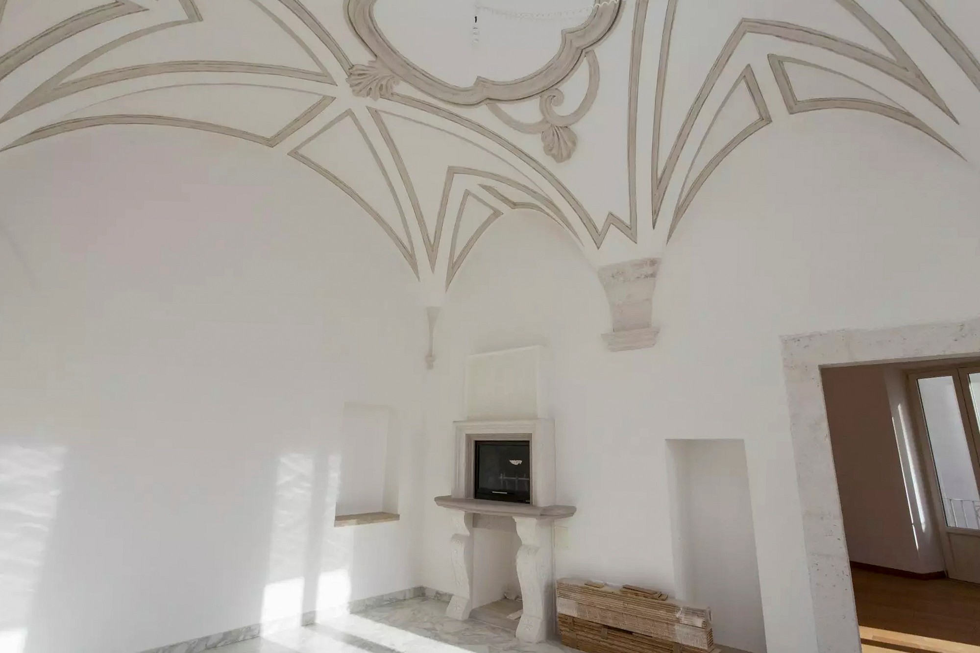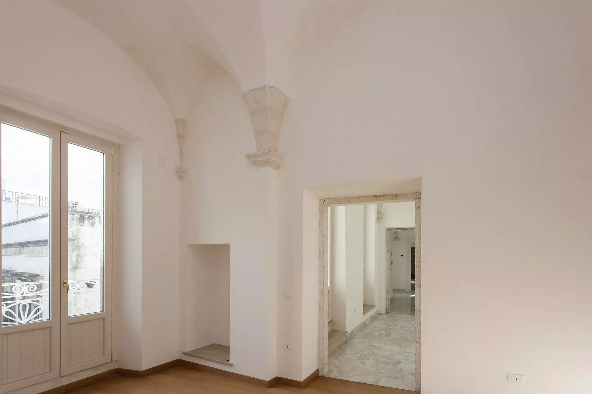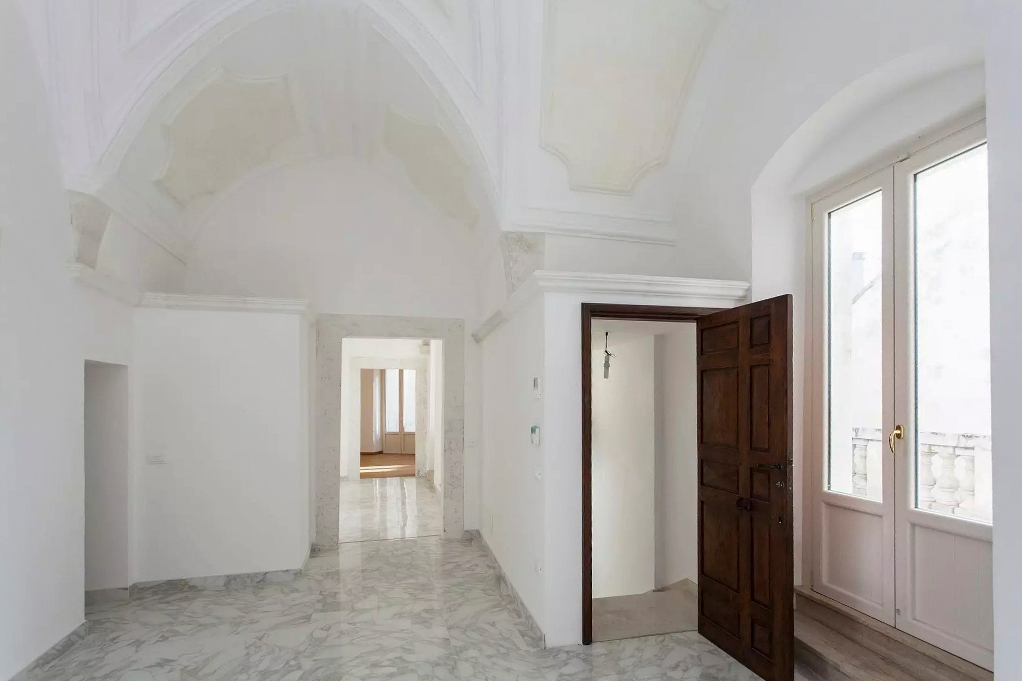 On the first floor there are three independent commercial units, all of which are rented. The main part of the palazzo extends over the first and second floors - it is accessible through a representative entrance with a large wooden door. Here there are representative rooms with vaulted ceilings and decorations from the 16th and 17th centuries.