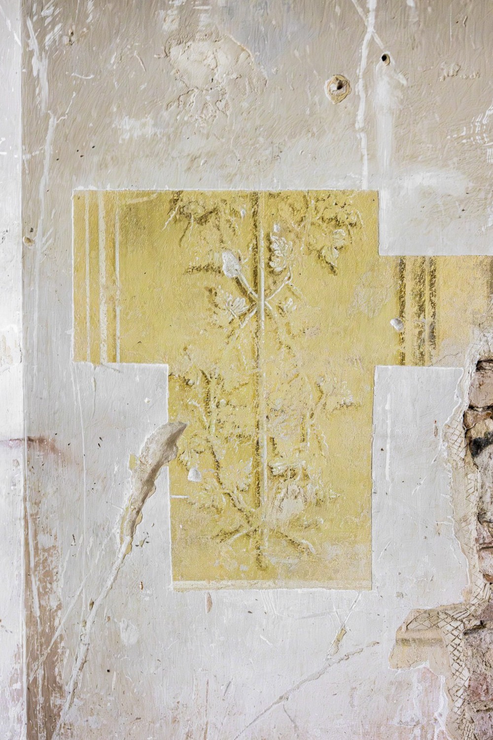 På første sal befandt de repræsentative opholdsrum sig, herunder en stor spisestue og en balsal med halvcirkelformede mosaiksøjler. Balsalen er delvist restaureret med overarbejdede vægmalerier og fornyede vinduer.