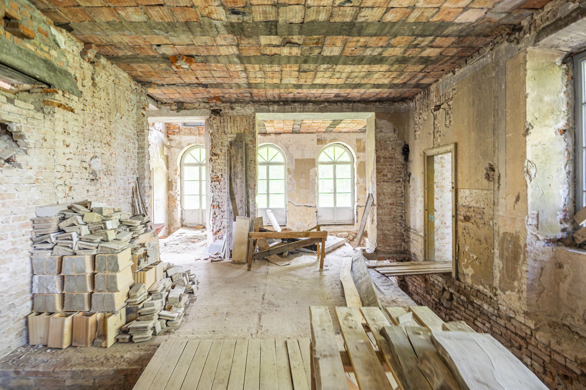 Det første foto viser en mulig tilstand af ejendommen efter en komplet restaurering og er genereret med kunstig intelligens.