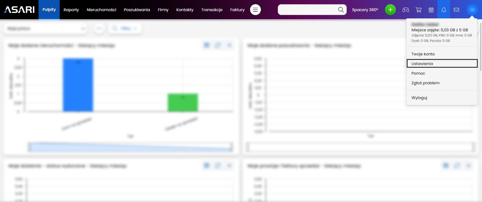 - Zaloguj się do programu i przejdź do ustawień w prawym górnym rogu menu.