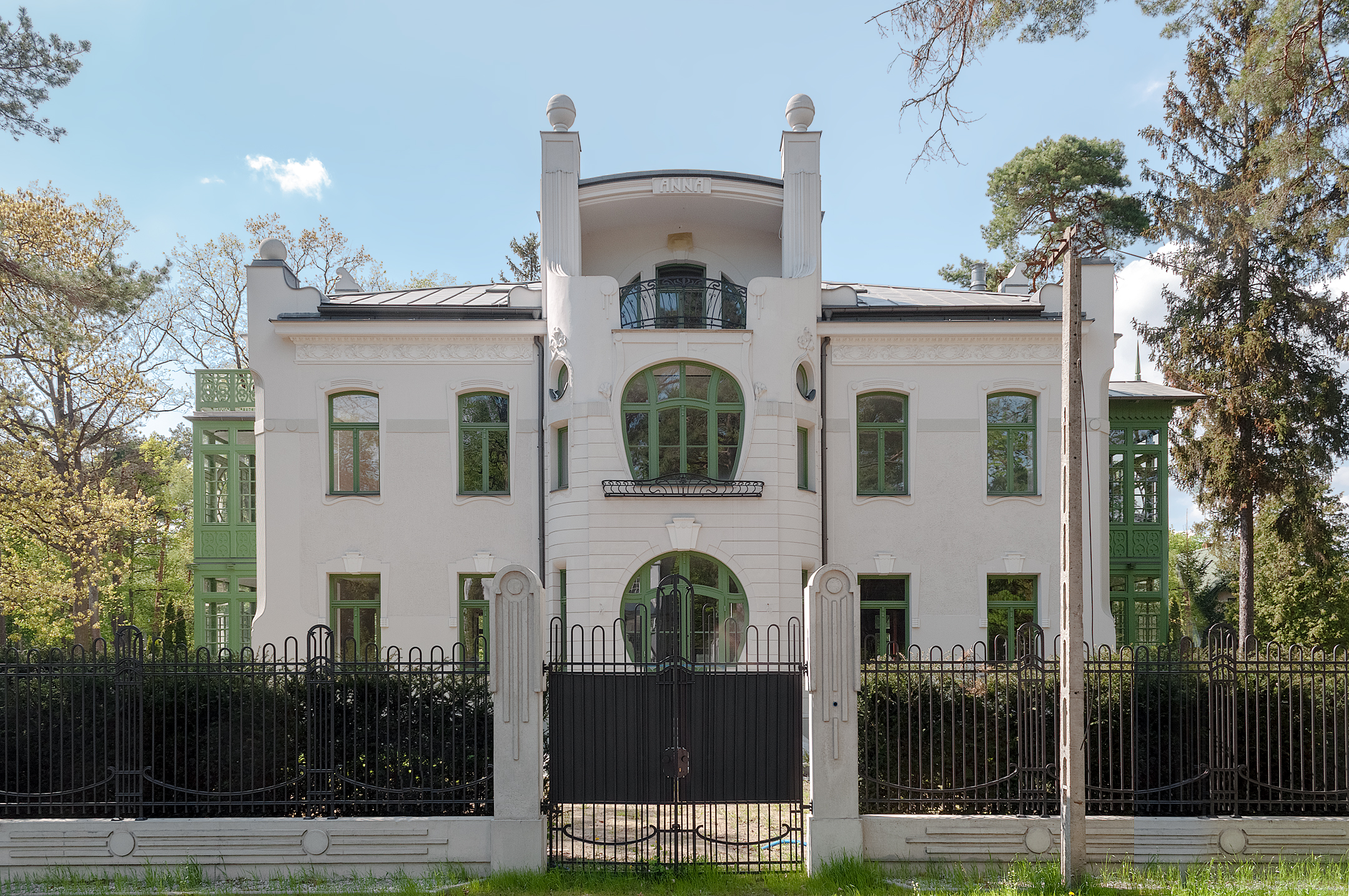 At the top: Konstancin-Jeziorna. There is a variety of architecture to be discovered in the town. Many villas, such as the freshly reconstructed "Villa Anna" from 1905, show a wild mix of styles from historicism or Art Nouveau combined with regional trends such as the Polish mansion style "Styl dworkowy" or "Świdermajer". The houses are often equipped with one or more glazed wooden verandas; they were typical for the summer residences of the time.