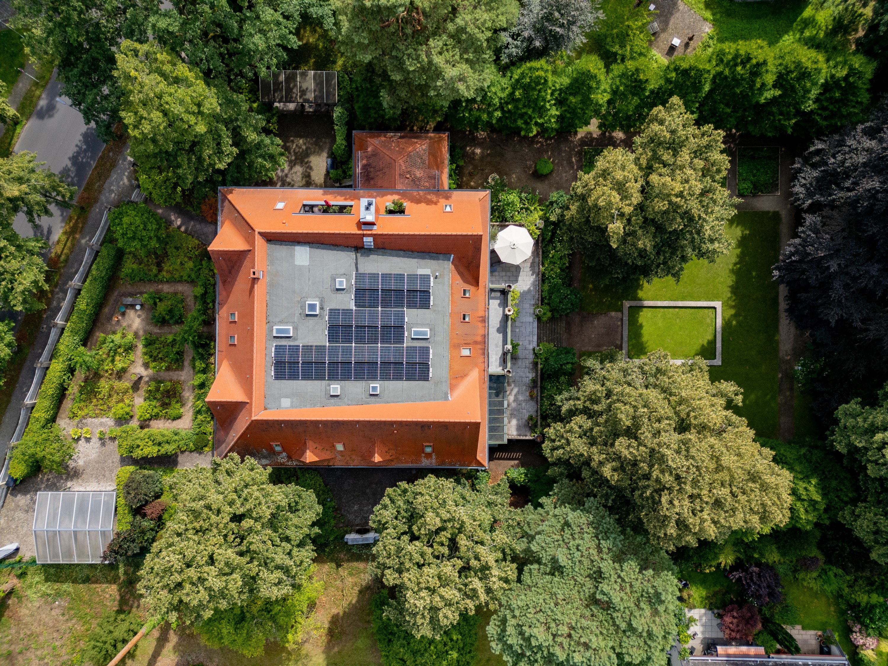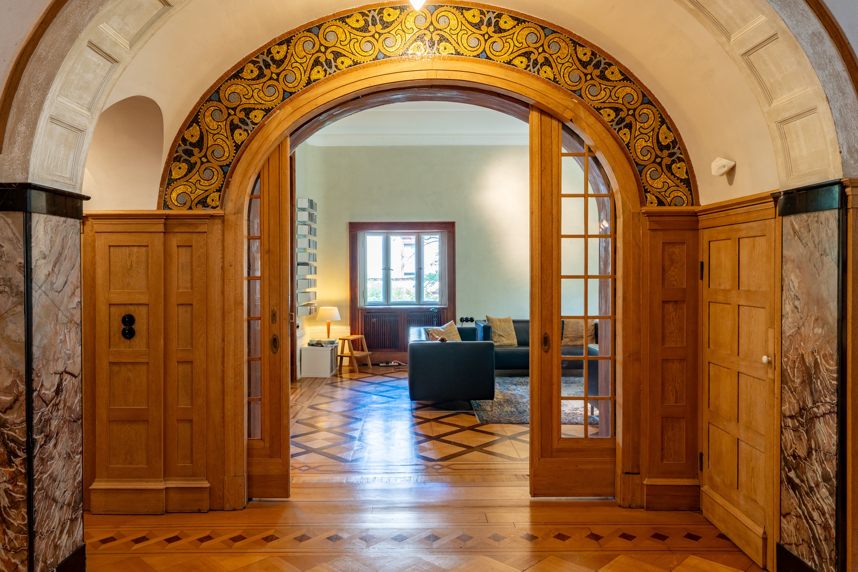 The stately country villa has been brought back to life by its owners with great respect for its history – a careful, yet thorough restoration that revived Jugendstil elements such as mosaics and intricately crafted stair railings, while skilled craftsmen integrated the historic infrastructure into a modern energy concept.