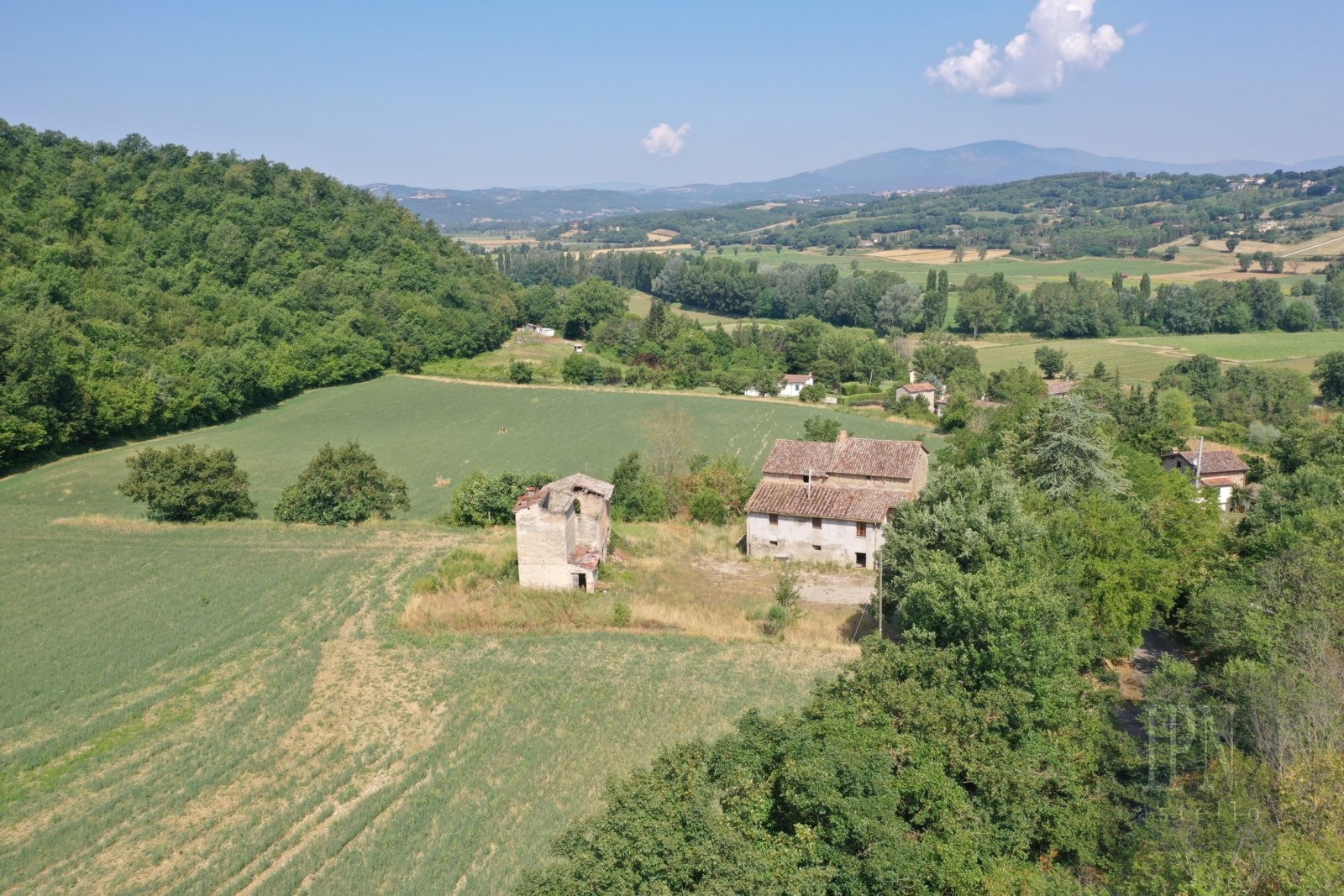 The estate dates back to the Lombard period, retaining the charm of traditional rural architecture. Positioned on a gentle hillside, the buildings offer sweeping views over the valley below and the surrounding green hills, characteristic of this unspoiled part of central Italy.