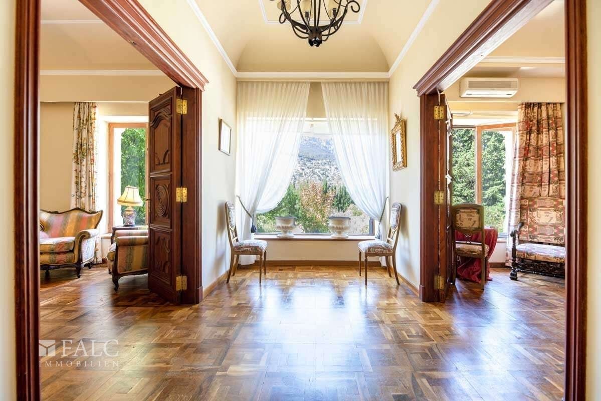 Water and electricity are self-supplied. The property is suitable both as a private main residence and as a prestigious retreat or family/guest estate.