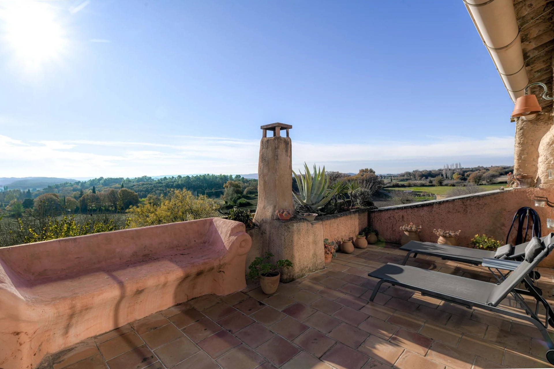 On the second floor, there is an independent 62 m² studio. The 47 m² living area is accentuated by a cathedral ceiling, an open kitchen, and a large window front leading to a terrace. From there, the panoramic view of the surrounding countryside is simply breathtaking.