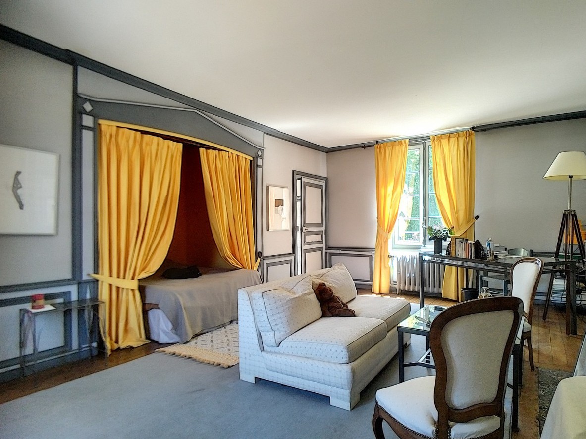 The north and south pavilions, which were formerly connected by two wings removed in the 19th century, provide additional living space. The first pavilion includes a guesthouse of approximately 150 m² over two levels, featuring an entrance, an office/living room, a small kitchen, five bedrooms, two bathrooms, and a toilet. The second pavilion, also around 150 m², spans three levels and offers an impressive room on the second floor with a historic roof structure.