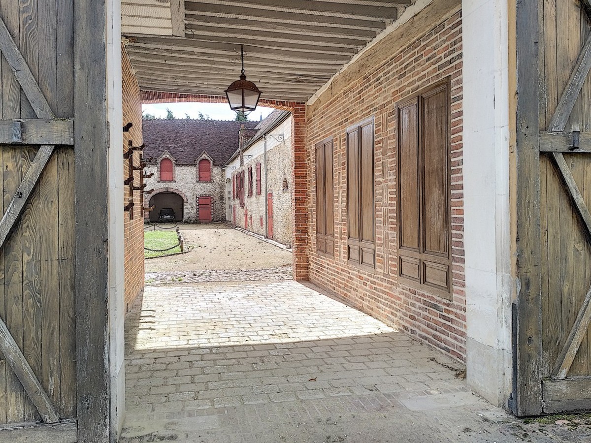 The U-shaped outbuildings, covering around 700 m², have been transformed into a charming, rustic apartment. This space includes an entrance hall with a bread oven, a living room, a dining area with a fireplace, a kitchen, a bedroom, a bathroom, and a toilet. The rear access leads to the stables with horse boxes, a saddle room, a spacious 50 m² room, a barn, and a workshop. There is also the possibility to create another independent apartment on the upper floor.