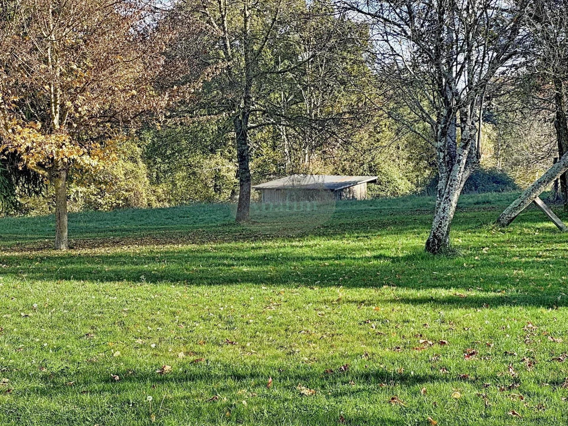 The estate includes a large attic (485 sq ft) and an adjoining barn. The park-like garden features a swimming pool, a pavilion, a vegetable garden, a well, a pond, and a shelter for two horses.