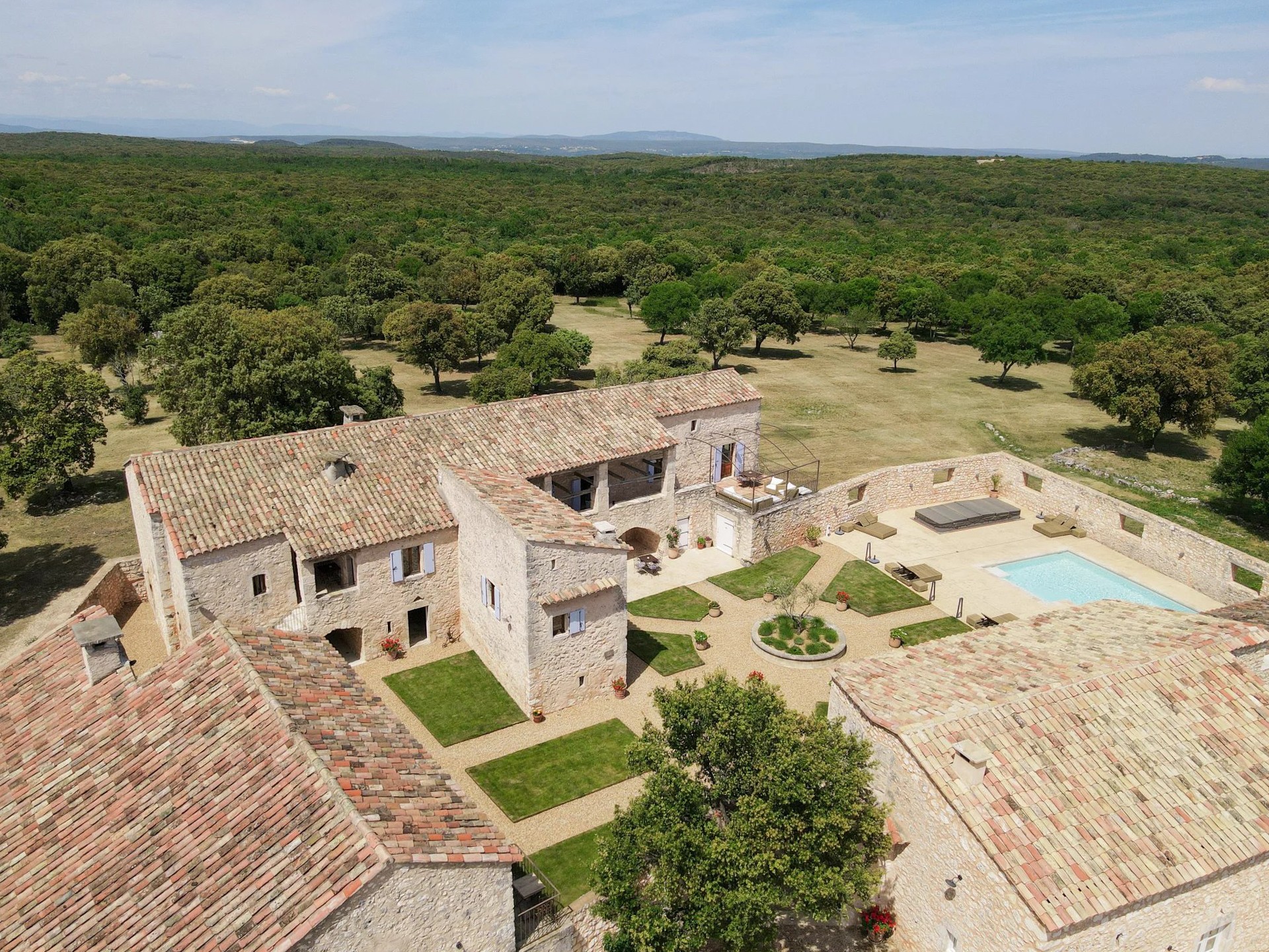 The total area spans over 352 hectares of contiguous land, extending to the gates of the "Venise Gardoise." The combination of untouched nature, historical elements, and spectacular landscapes with views of the Monts d’Ardèche makes this property one of the most exceptional in Provence.