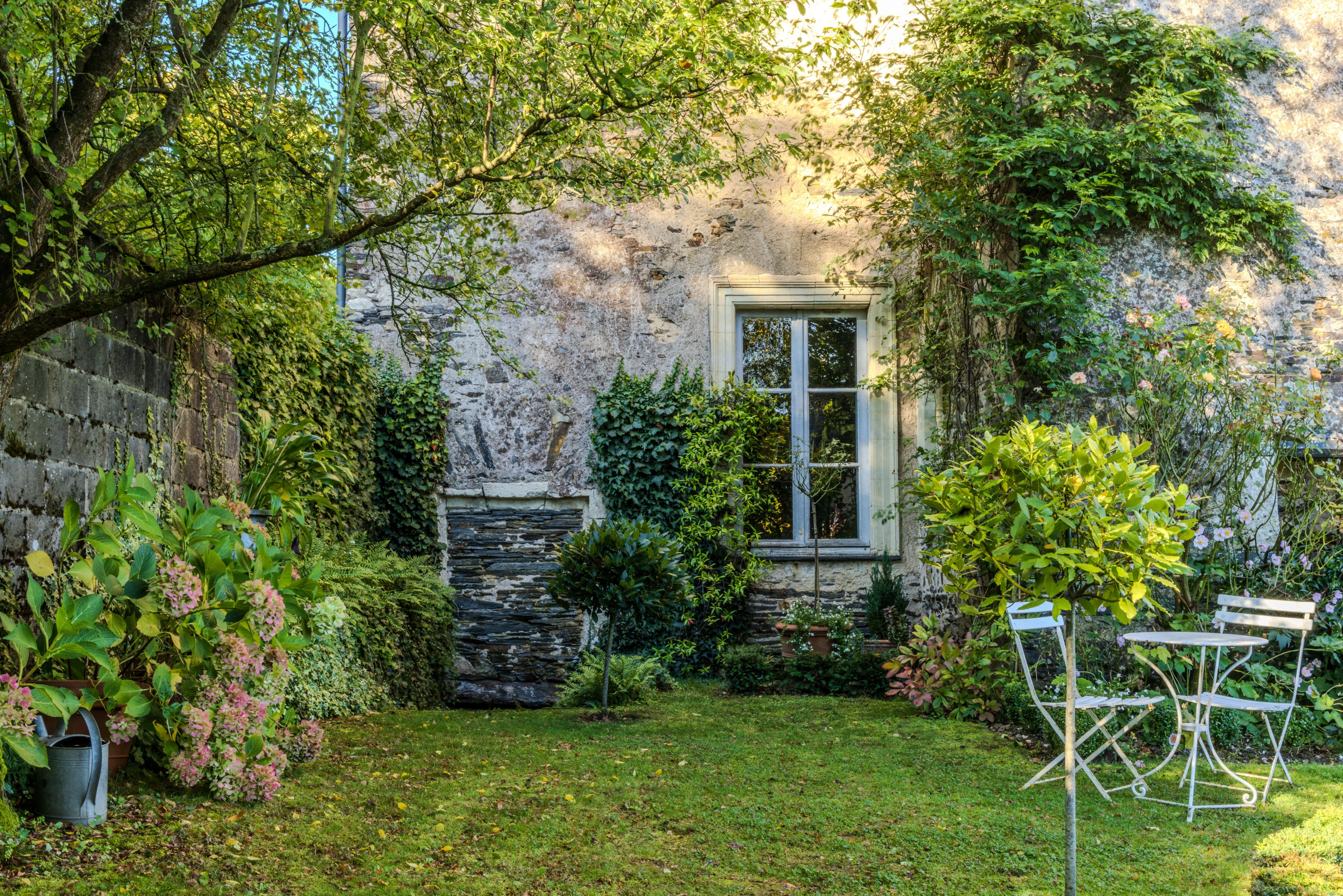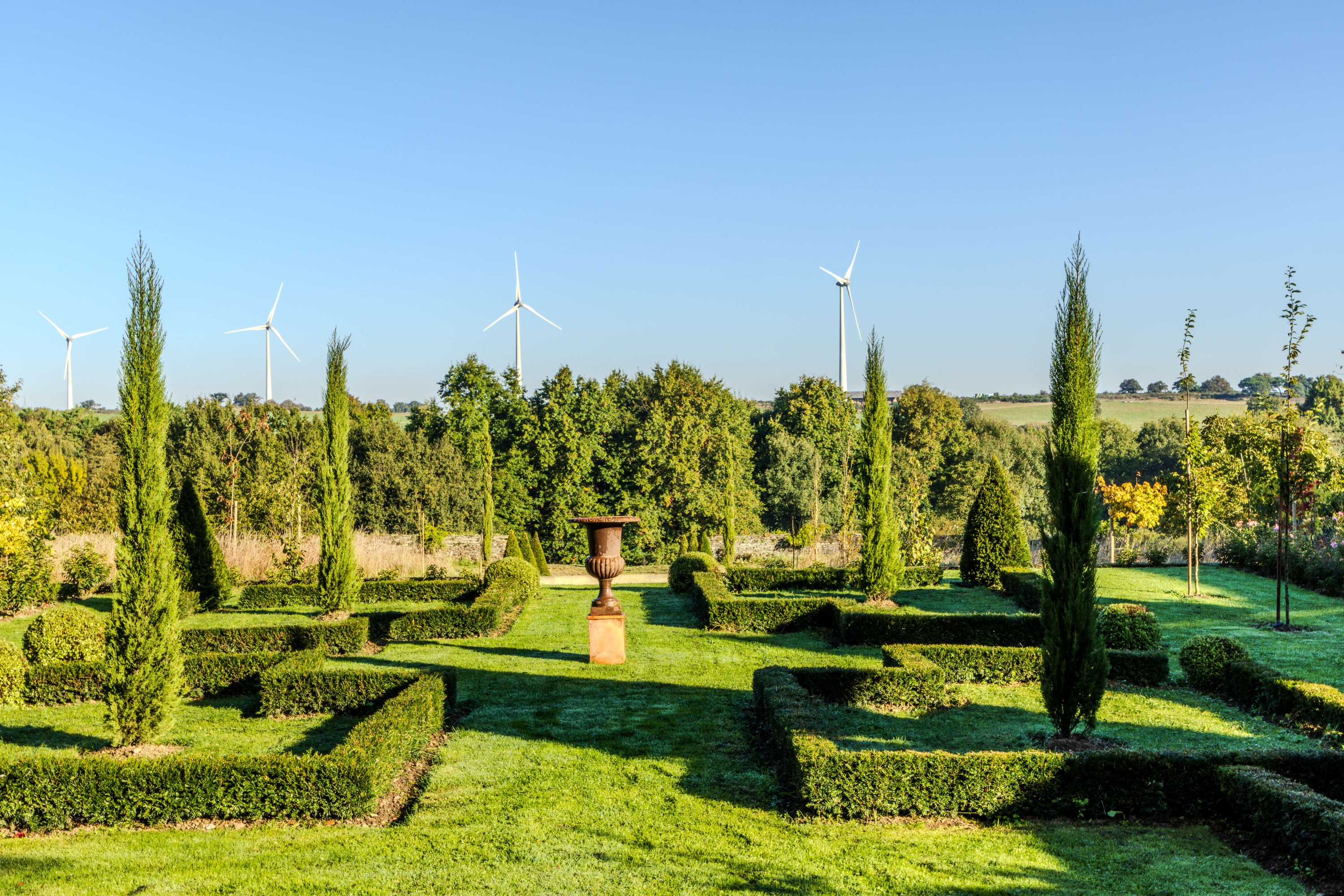 - A second garden, bordered to the north by a dry-stone wall with a haha, opens to the surrounding landscape. Planted with young trees, it serves as an intermediary between the formal garden and the meadow below.