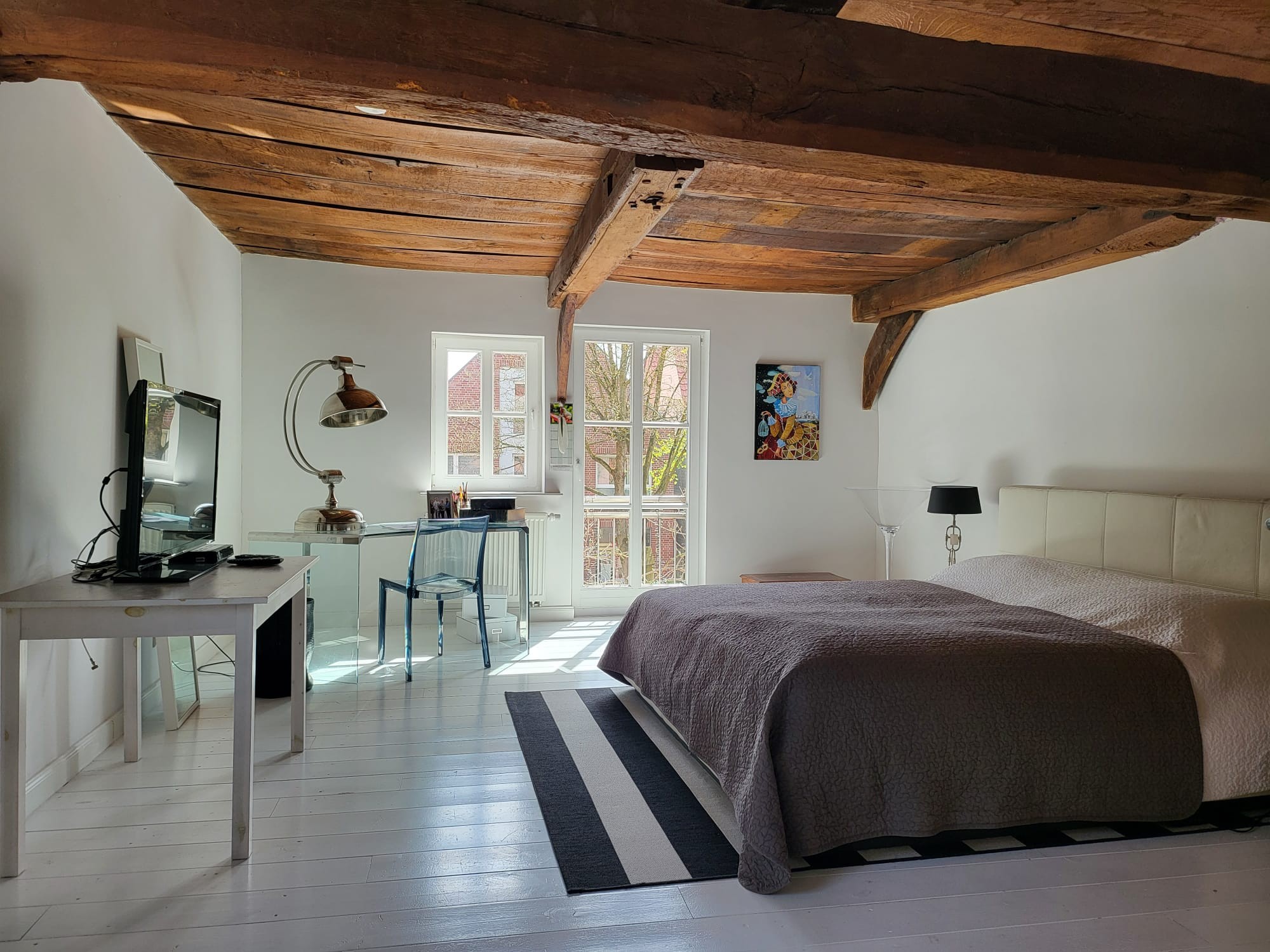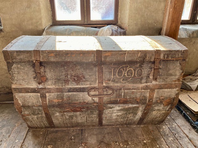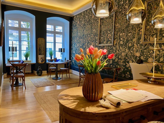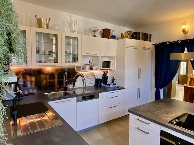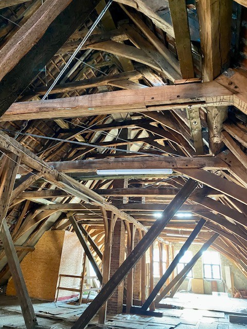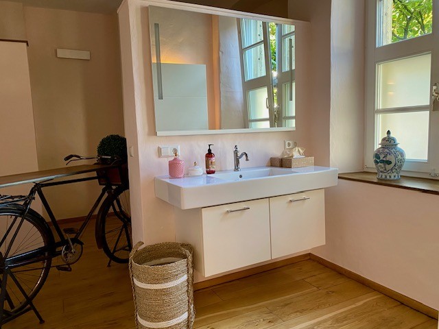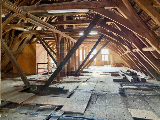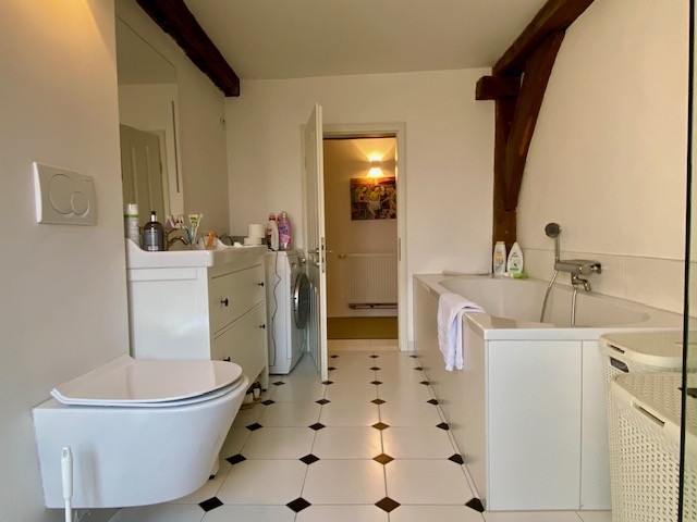 The house offers 12 rooms and 4 bathrooms. Original ceiling beams are preserved in the central hall and several rooms, complemented by solid wood flooring and original stone flooring in the hall. A vaulted cellar is included. The attic provides potential for further development. There are two entrances: a main entrance from the pedestrian zone and a second access from the inner courtyard. A parking space is located in front of the courtyard.