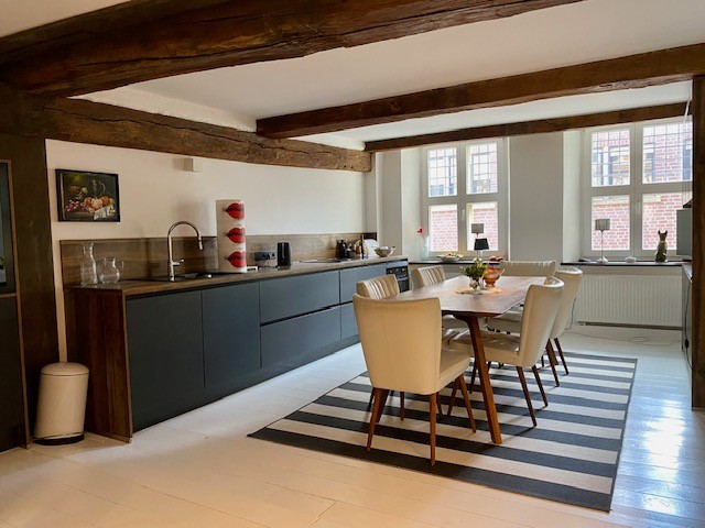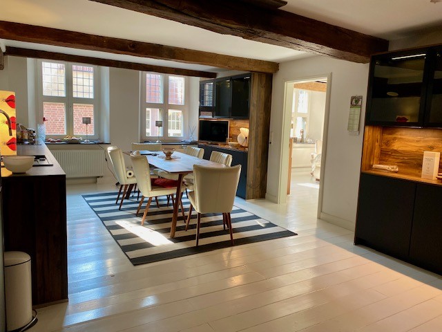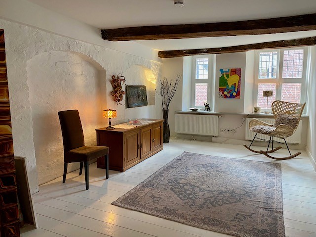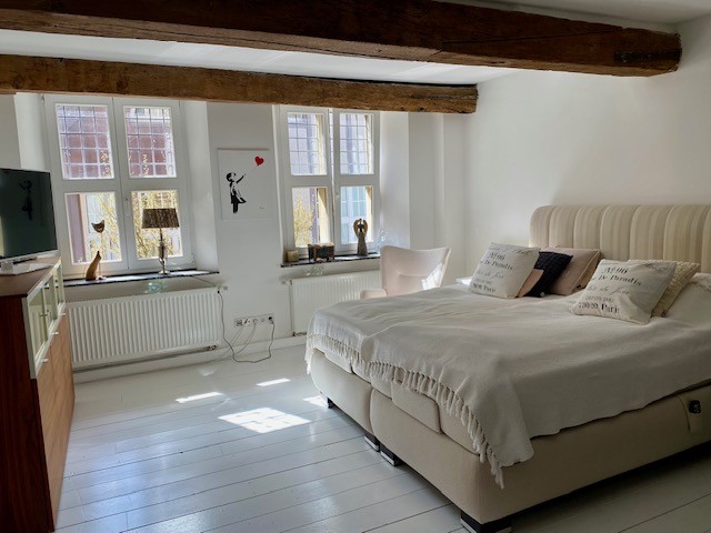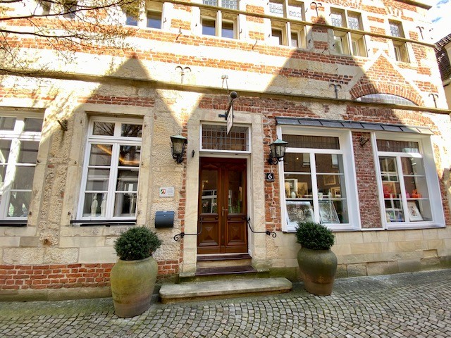 First documented in 1409, Haus Beckebans is considered the most significant secular building in Billerbeck and is a protected historic monument. The property represents a transitional type between an urban noble residence and an affluent bourgeois townhouse. The brick façade in Specklage (alternating brickwork) and the stepped gable with shell ornaments date back to 1560.