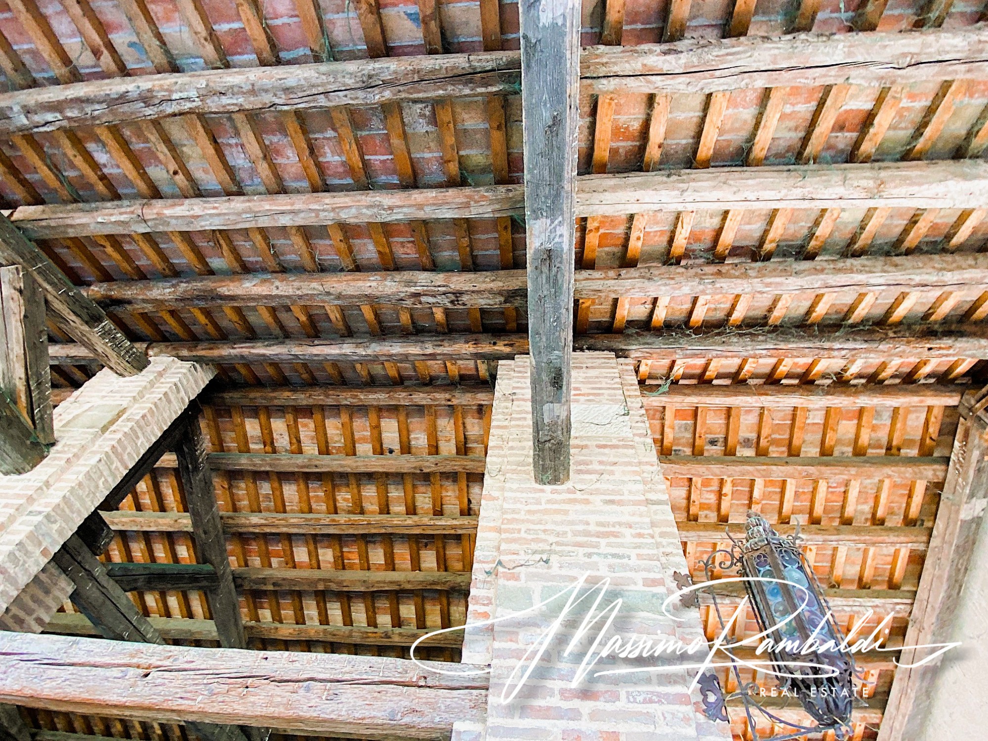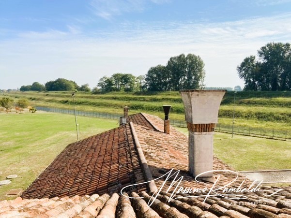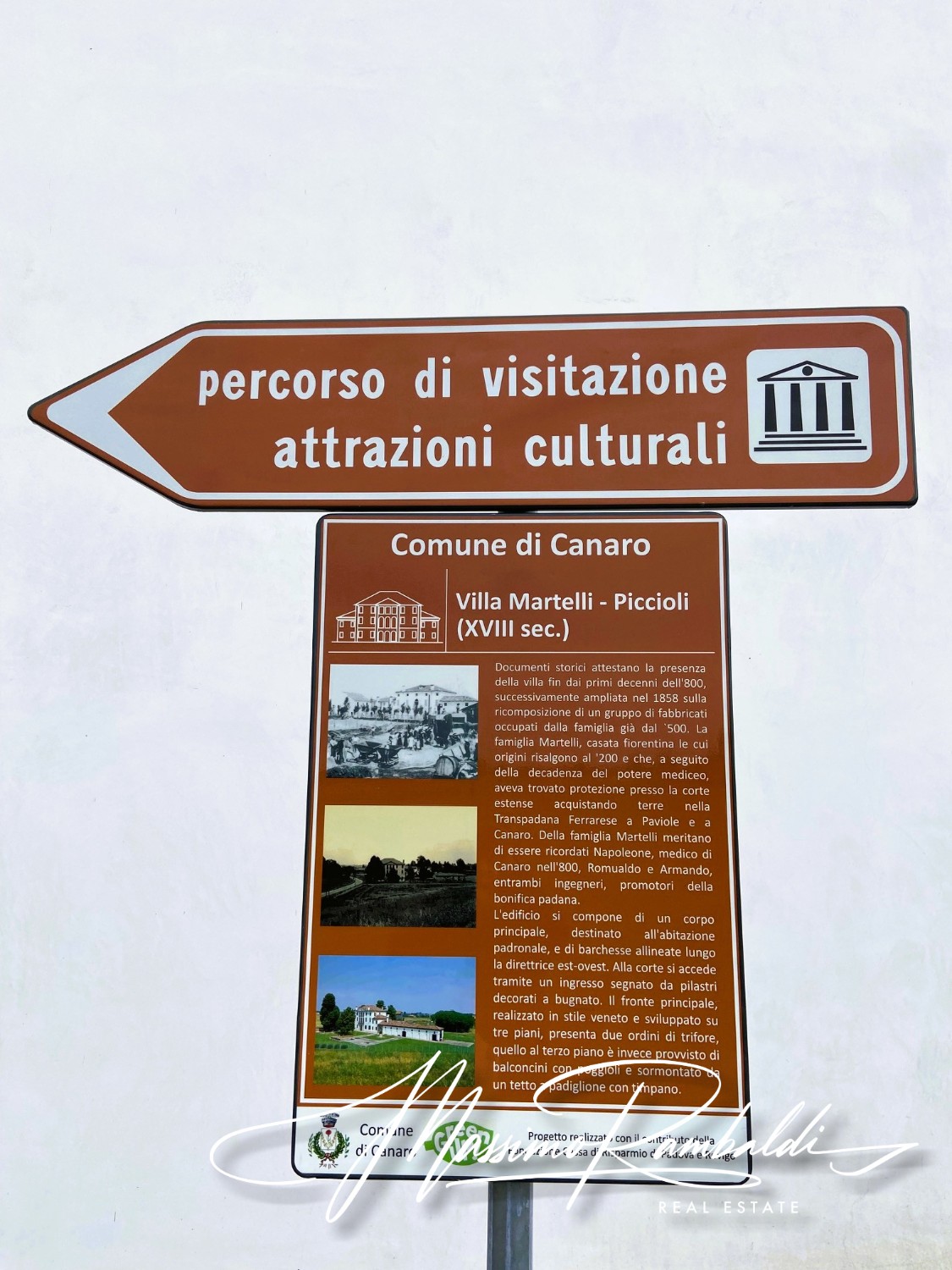 Nestled in greenery, the villa enjoys a quiet setting with easy access to major roads. Town centers in the Polesine region and regional highways are nearby. Located in Paviole, Canaro, it is also visible from the Po River embankment along river routes.