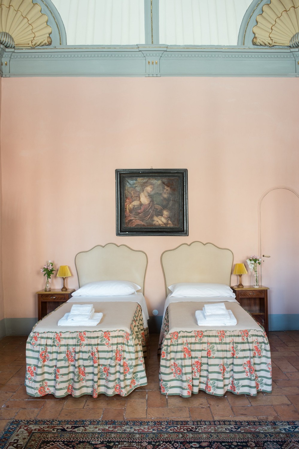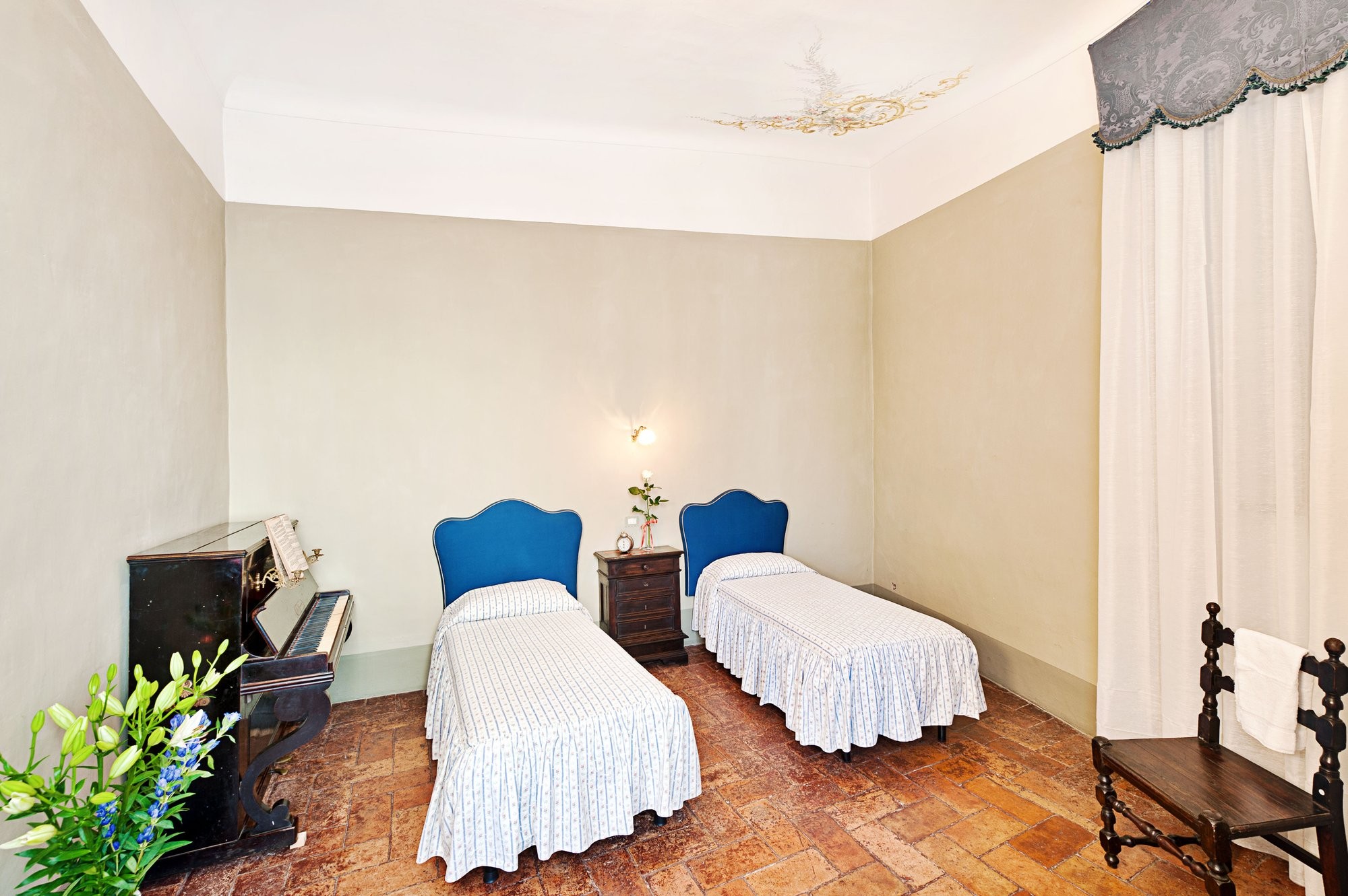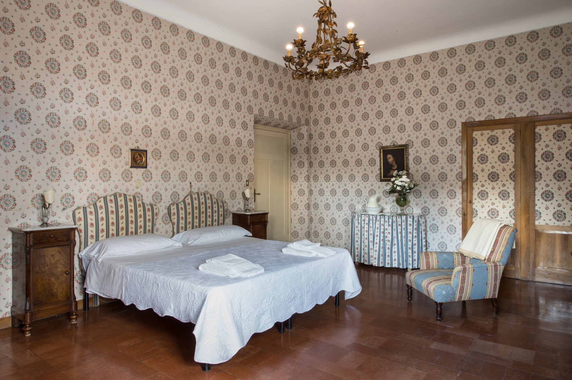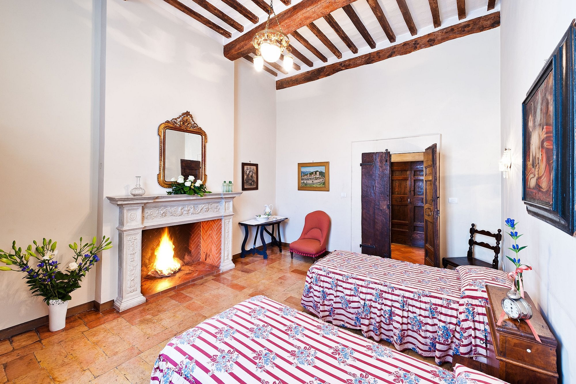 The residence includes six luxurious double suites, each with its own character and garden views. Frescoes, antique terracotta floors, and exposed beams enhance the historic atmosphere. Modern en-suite bathrooms have been elegantly renovated, while high ceilings and large windows provide the experience of living in a noble residence with all contemporary comforts.