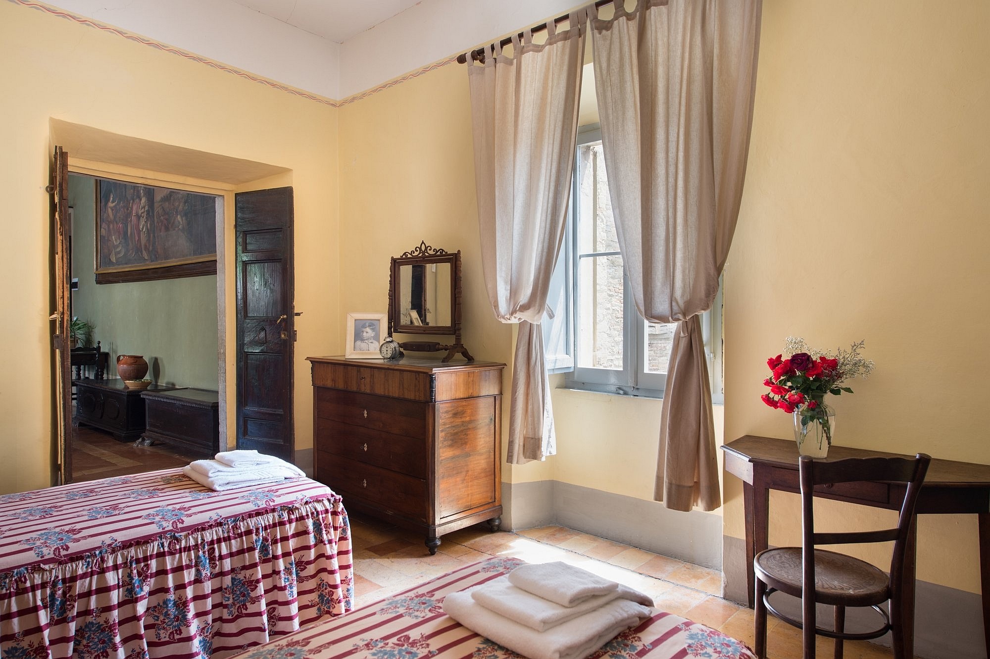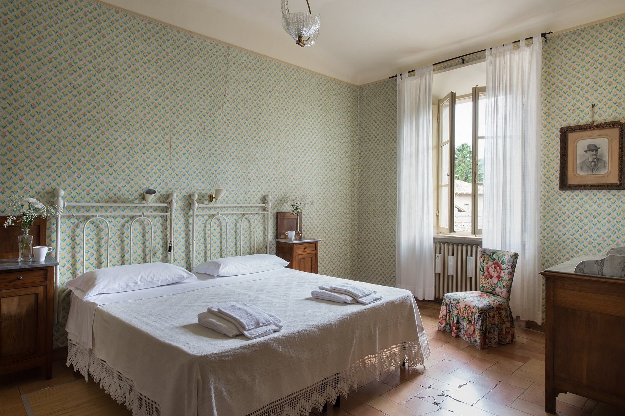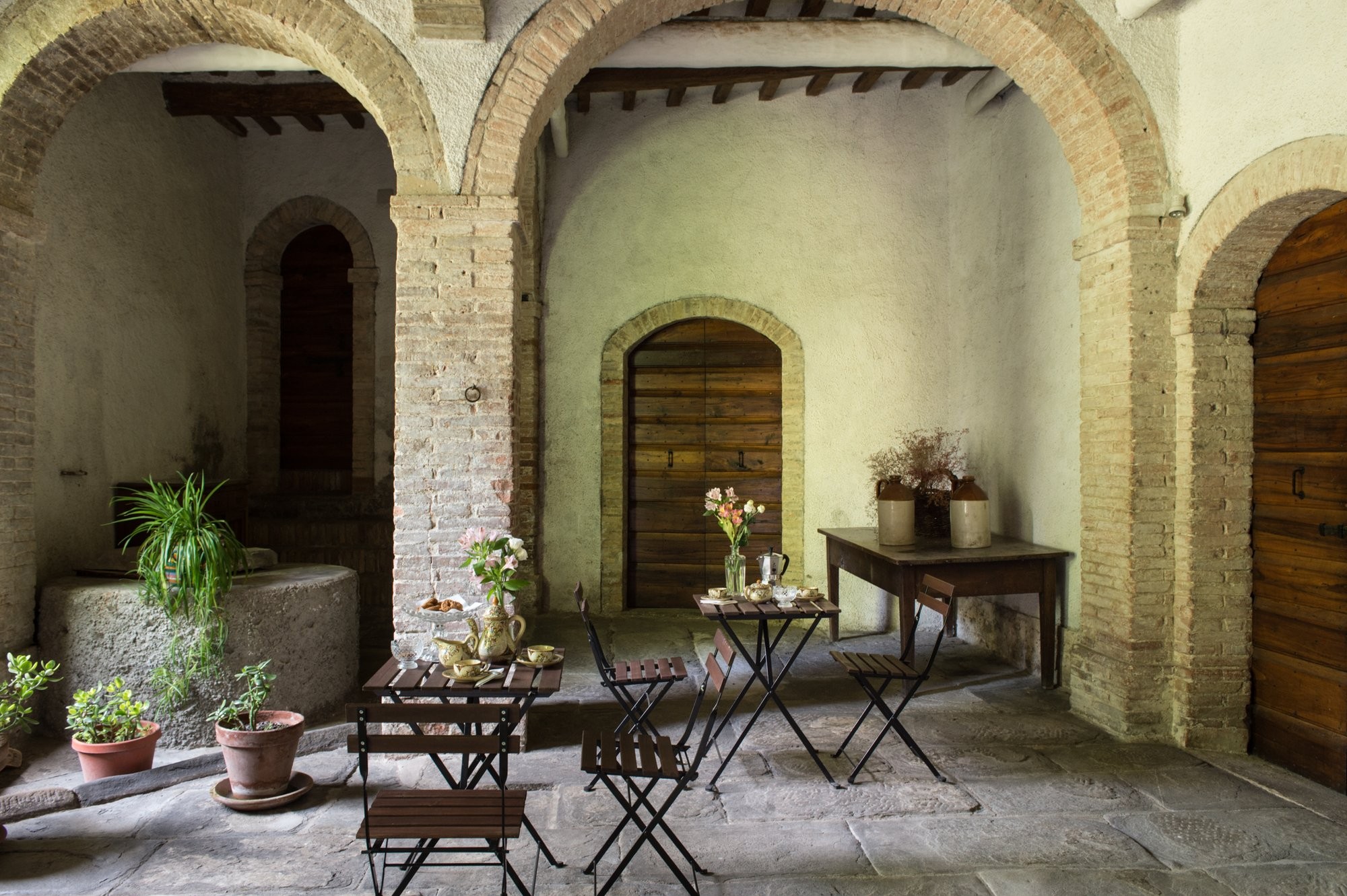 The residence includes six luxurious double suites, each with its own character and garden views. Frescoes, antique terracotta floors, and exposed beams enhance the historic atmosphere. Modern en-suite bathrooms have been elegantly renovated, while high ceilings and large windows provide the experience of living in a noble residence with all contemporary comforts.