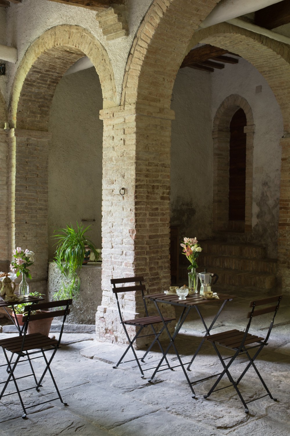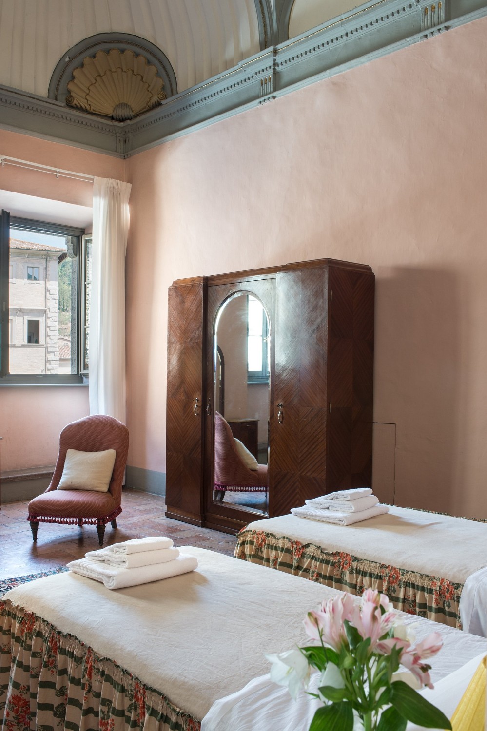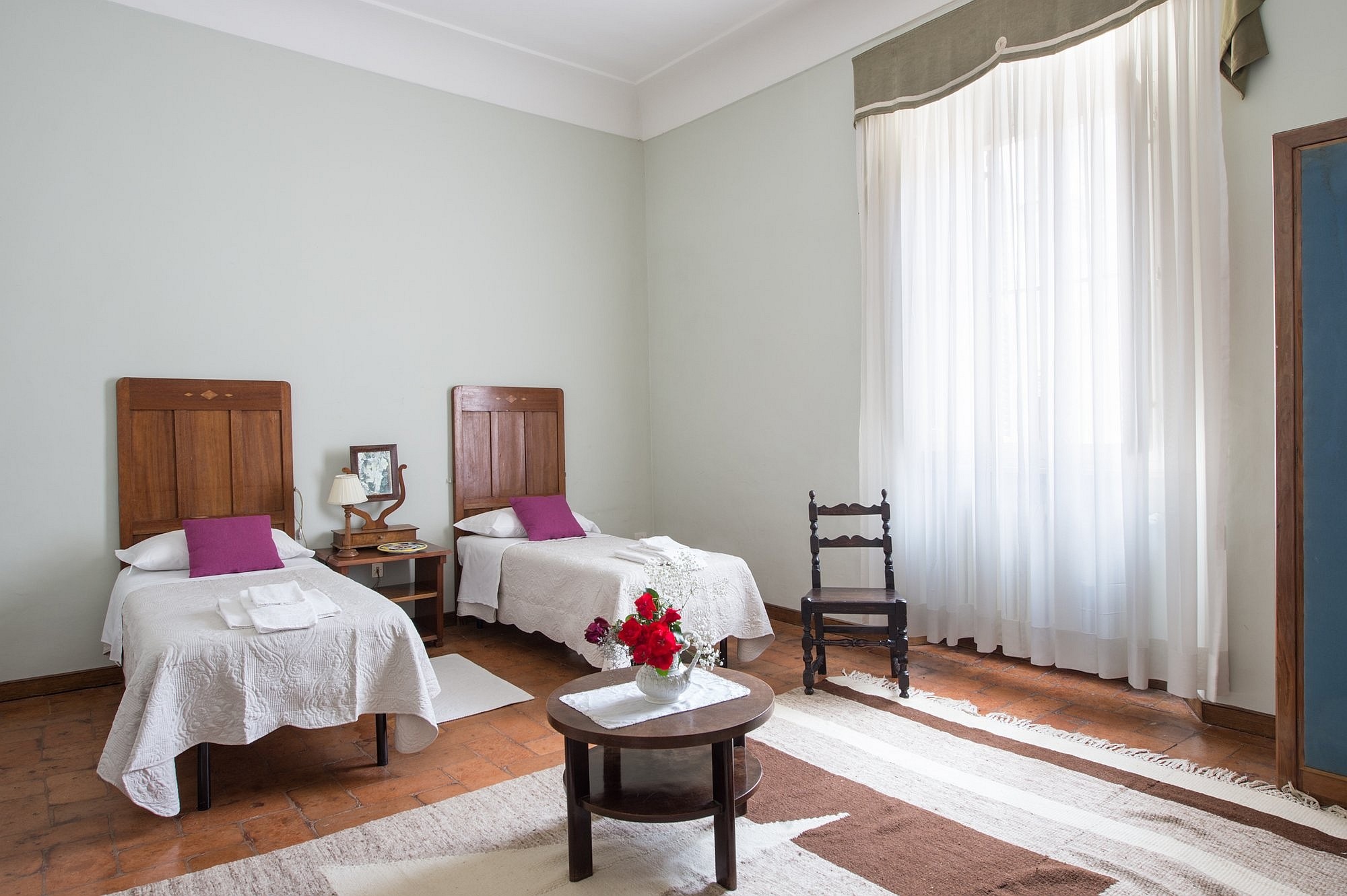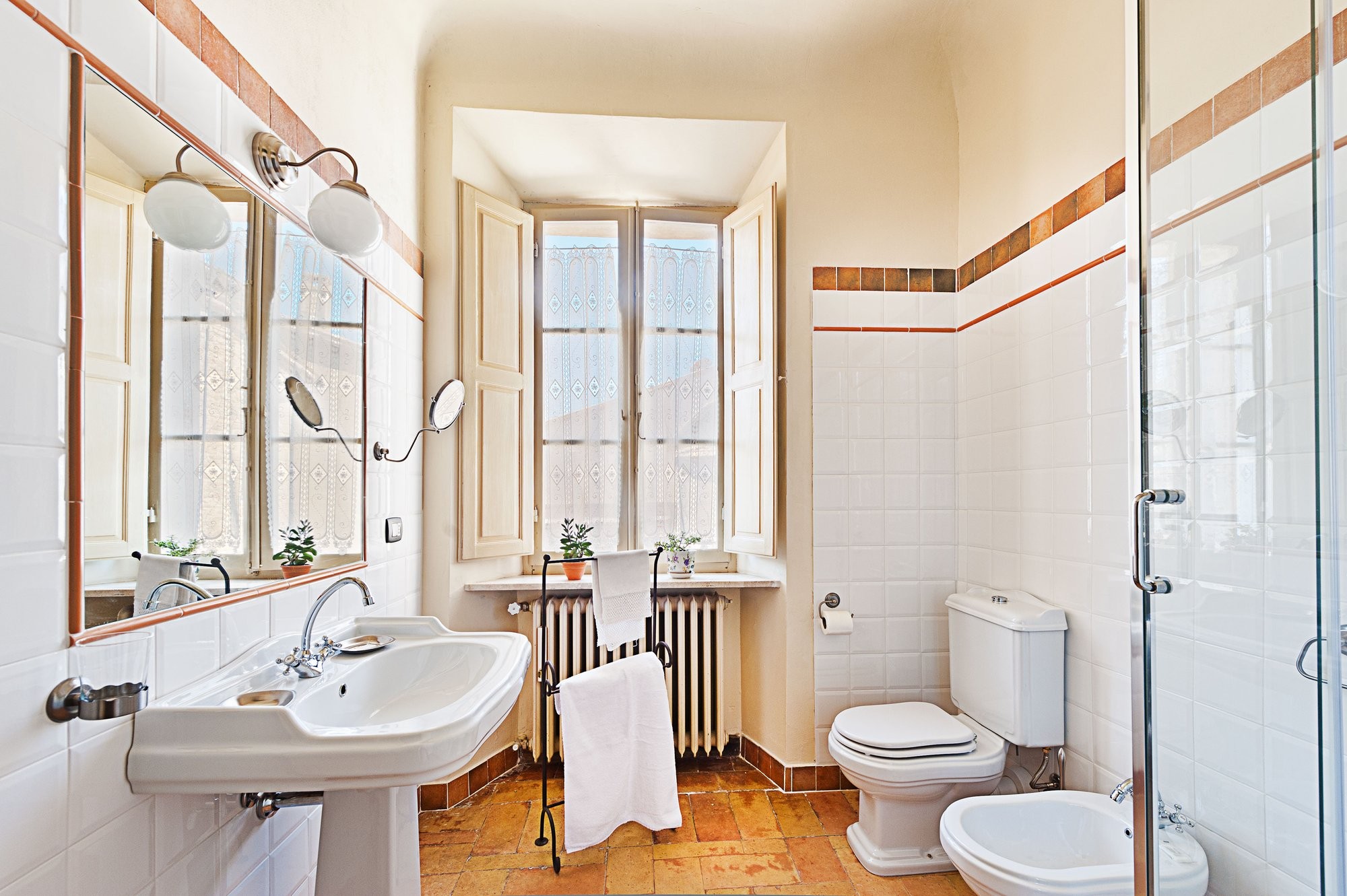 The residence includes six luxurious double suites, each with its own character and garden views. Frescoes, antique terracotta floors, and exposed beams enhance the historic atmosphere. Modern en-suite bathrooms have been elegantly renovated, while high ceilings and large windows provide the experience of living in a noble residence with all contemporary comforts.