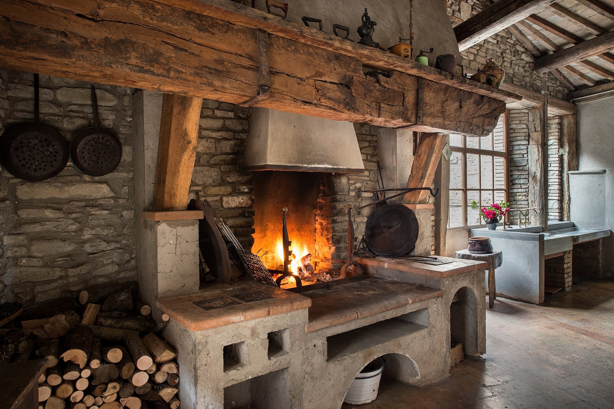 The right wing contains two kitchens: a modern chef’s kitchen with top-of-the-line appliances and a traditional kitchen with a large antique fireplace. Adjacent are a formal dining room for large dinner parties, as well as smaller breakfast and sitting areas. Laundry and storage spaces are discreetly located.