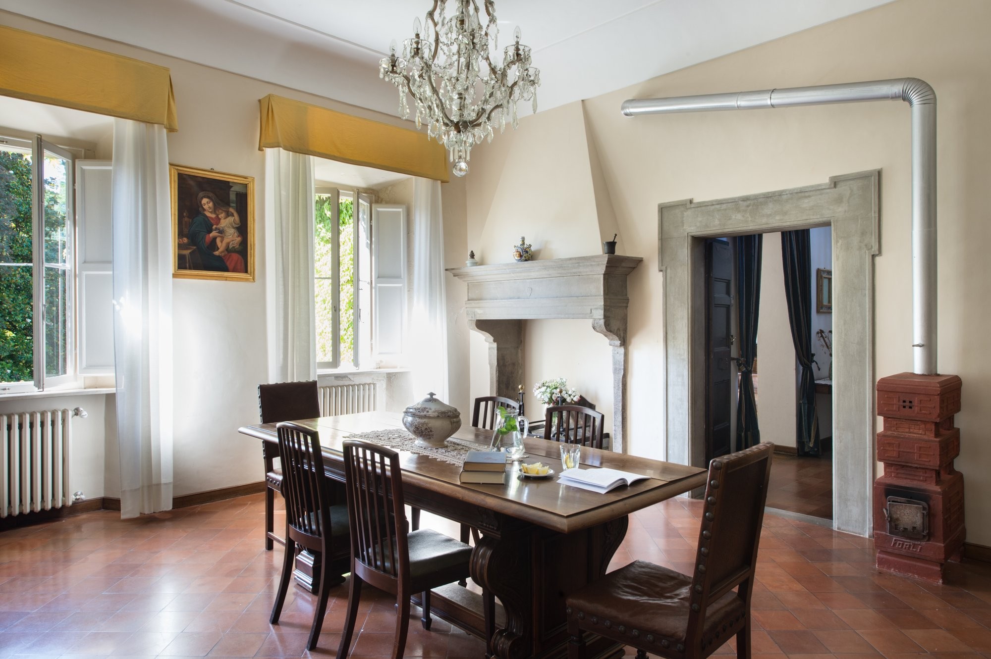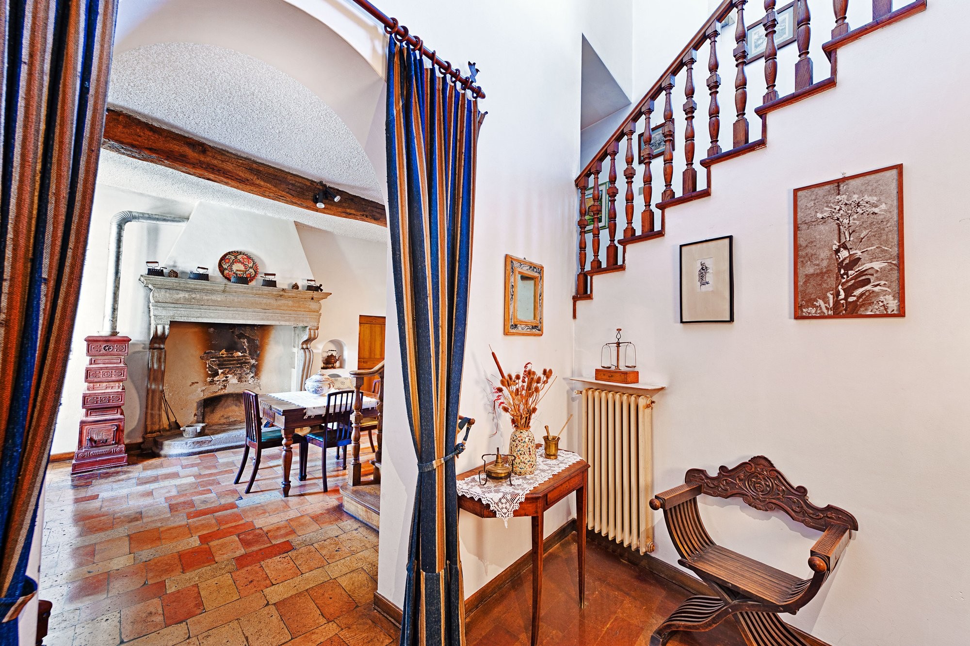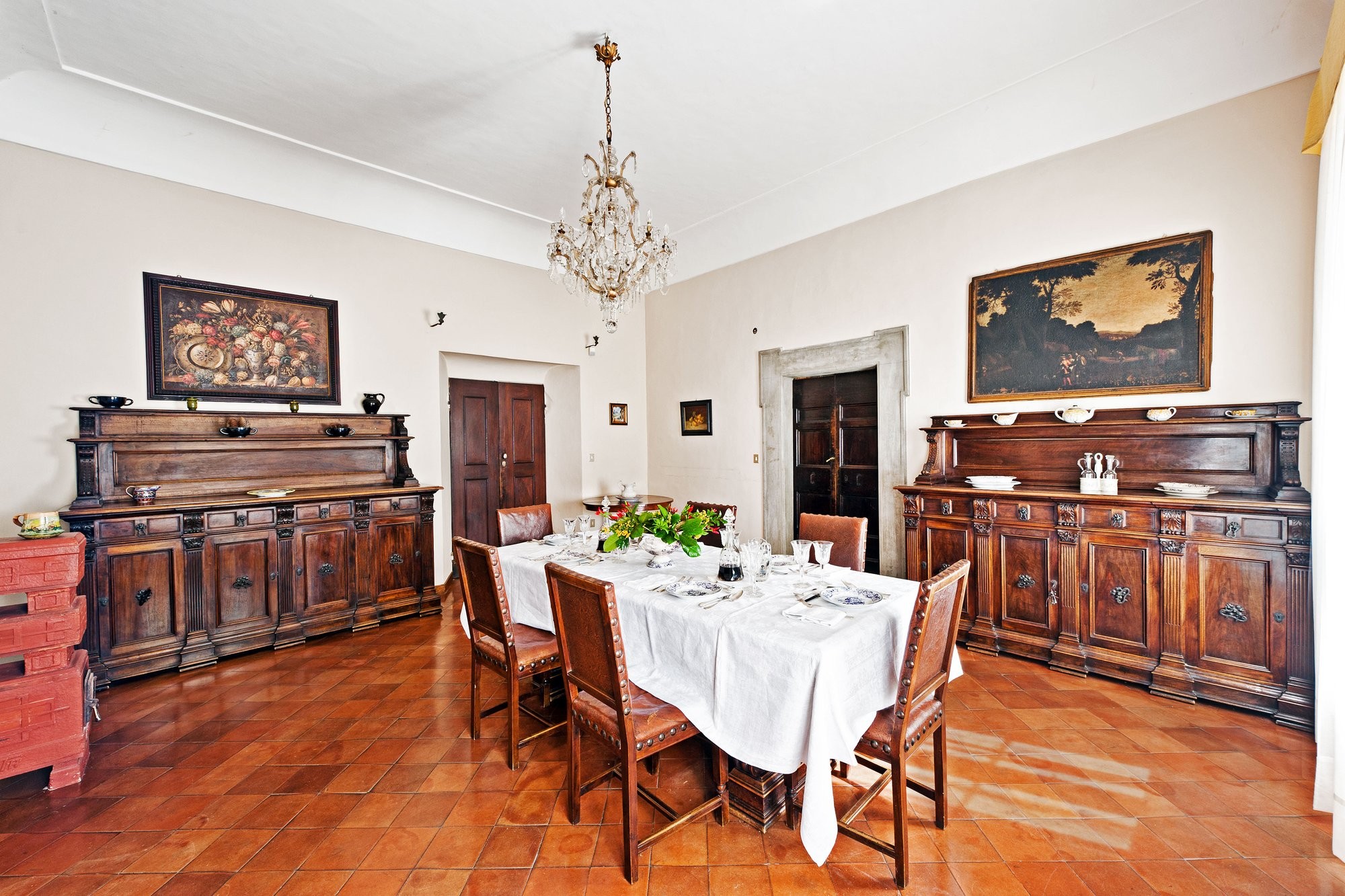 The left wing houses the piano nobile, adorned with original Renaissance decorations, high hand-painted frescoes, and walls that have witnessed over 500 years of Italian history. The right wing spans two floors, offering spacious living areas that blend historic character with modern comforts. Natural light streams through tall windows, highlighting arched doorways, decorative cornices, and carved doors – each element reflecting the residence’s noble heritage.