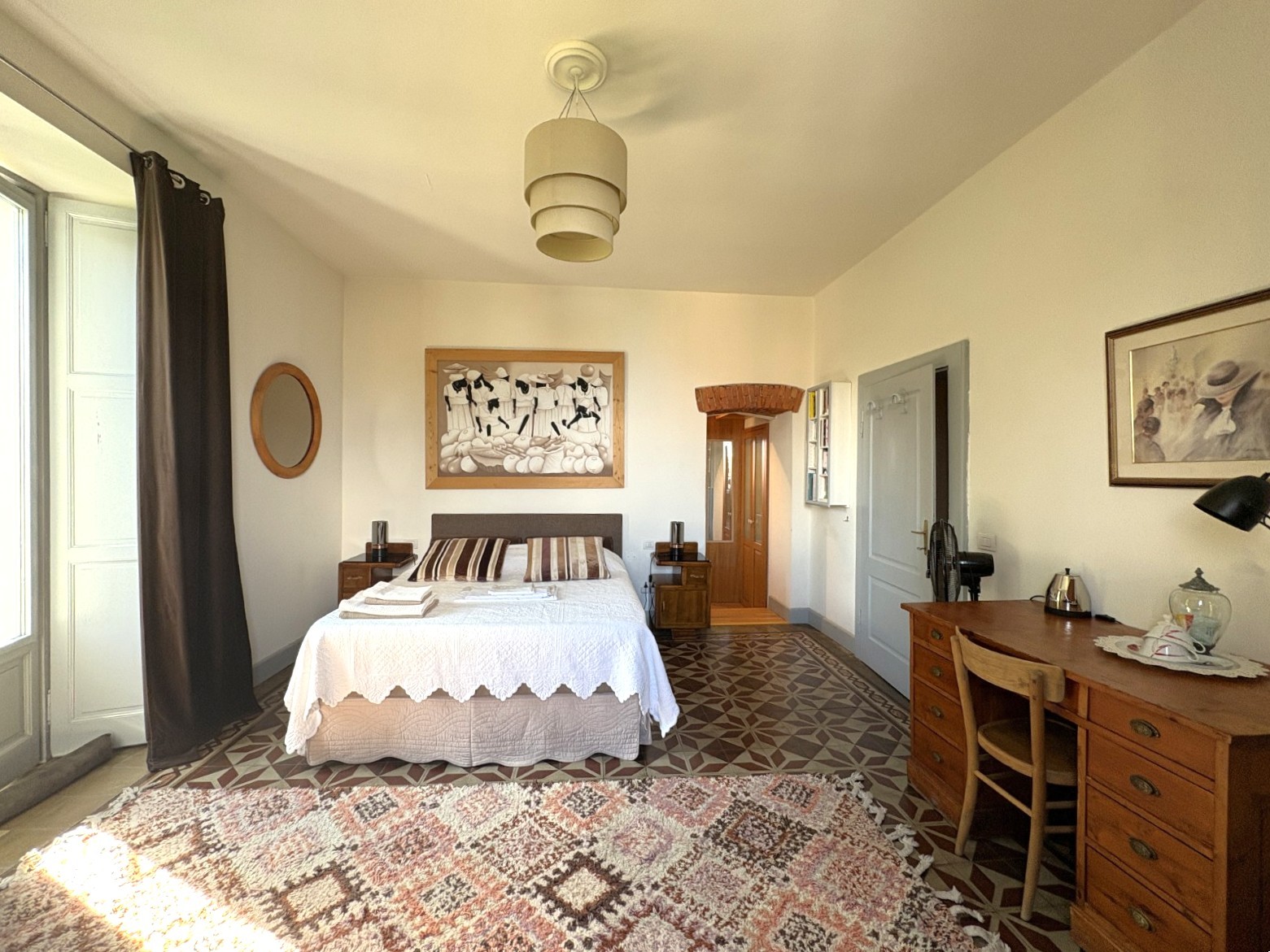 The estate includes the main villa, a stone guesthouse, and a landscaped garden with mature trees. The main villa consists of two connected but separately accessible units, suitable as a private residence or guesthouse.