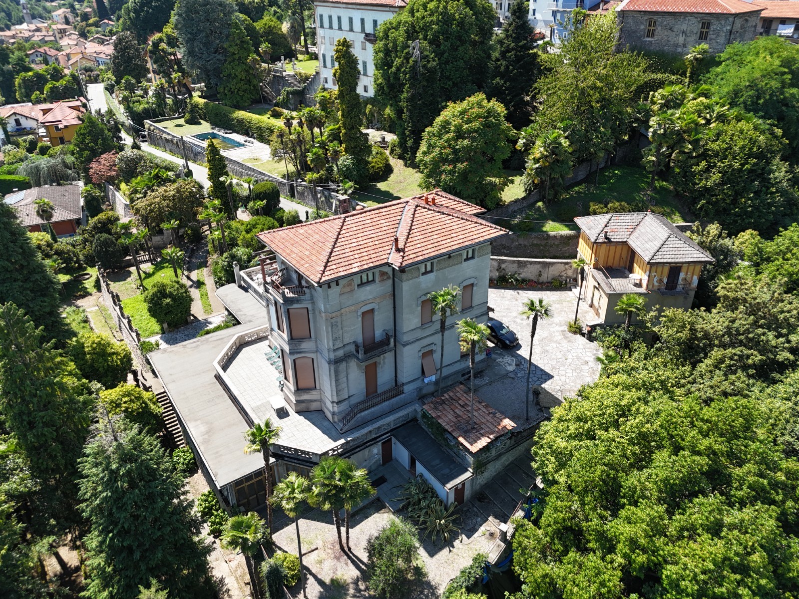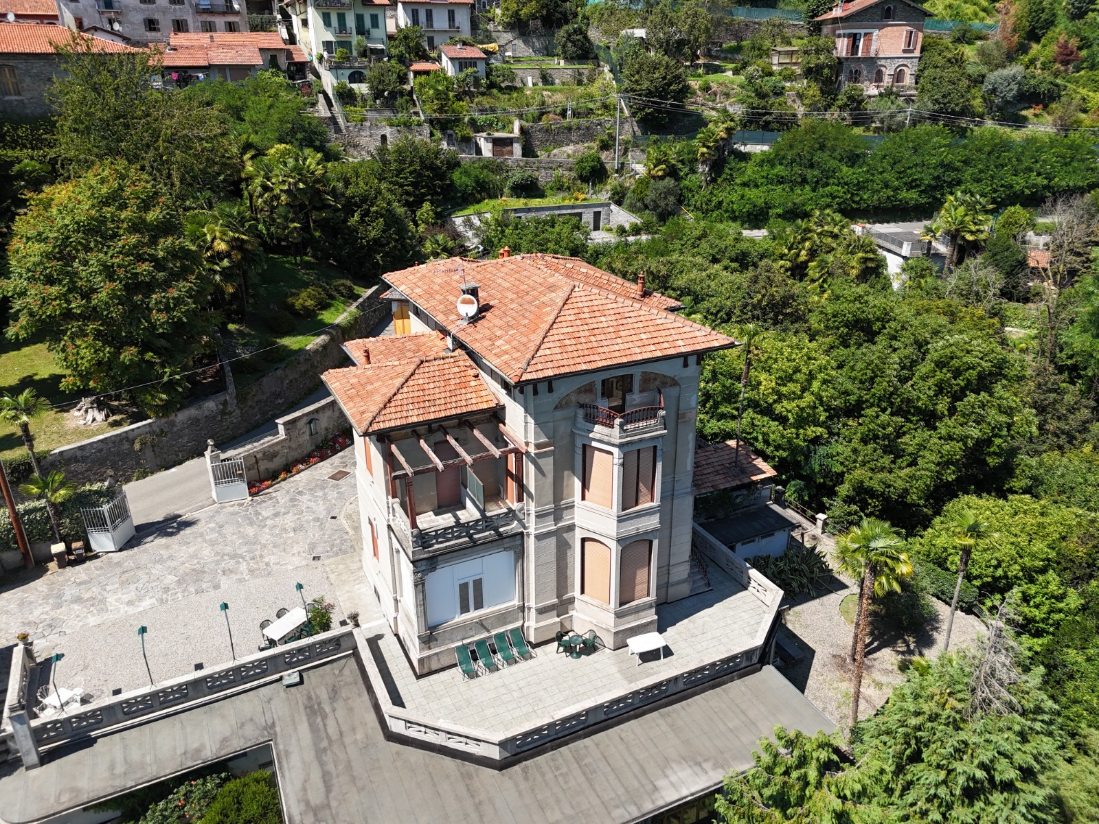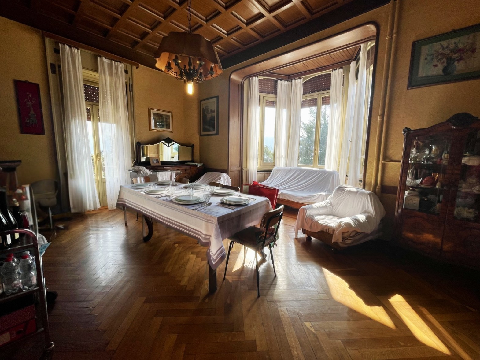 In the hamlet of Frino, in the municipality of Ghiffa, stands this 1930s villa on the shores of Lake Maggiore. The house extends over four floors and currently has nine apartments, common areas, a commercial kitchen and an outbuilding with an area of 100 square meters.