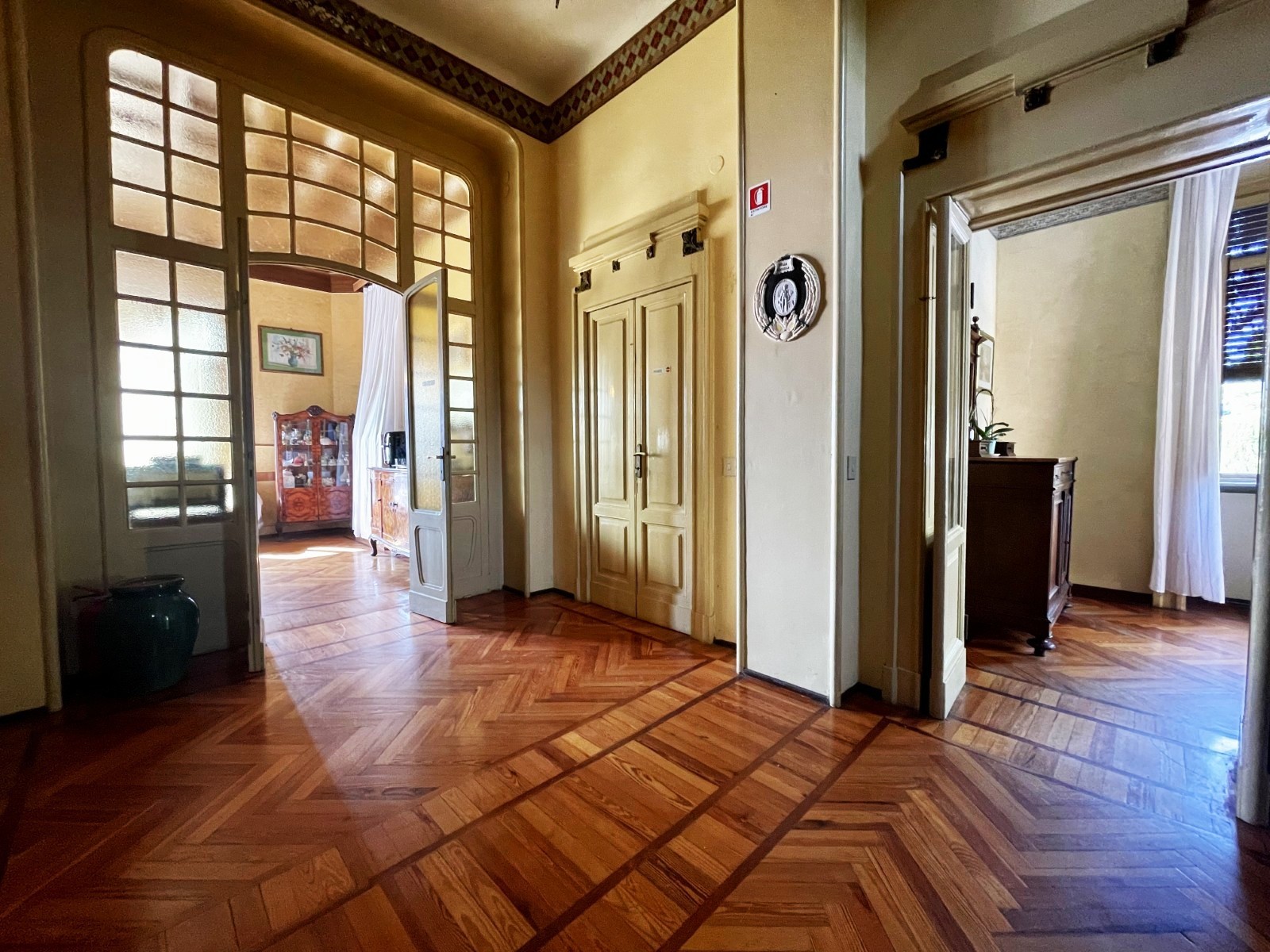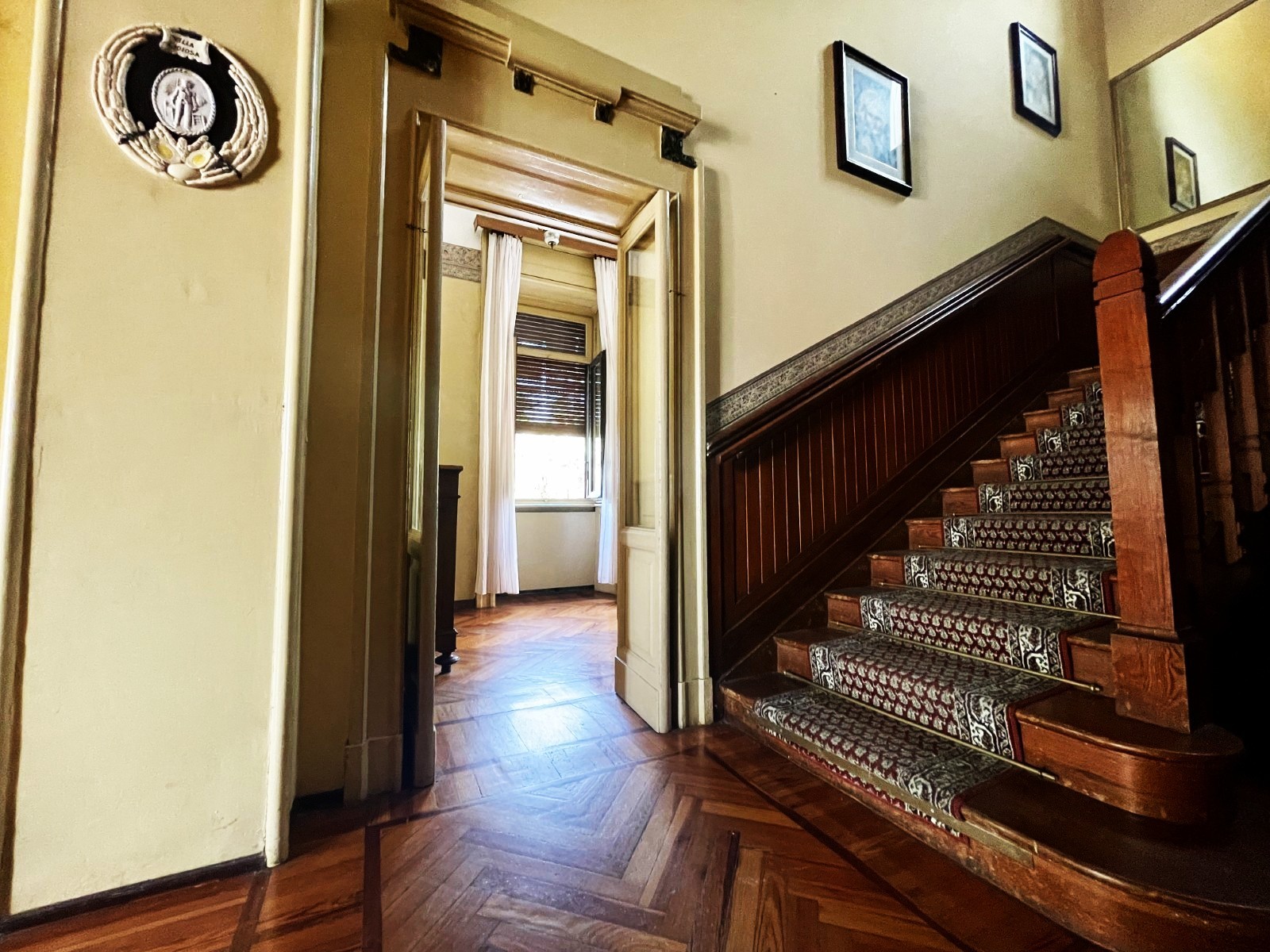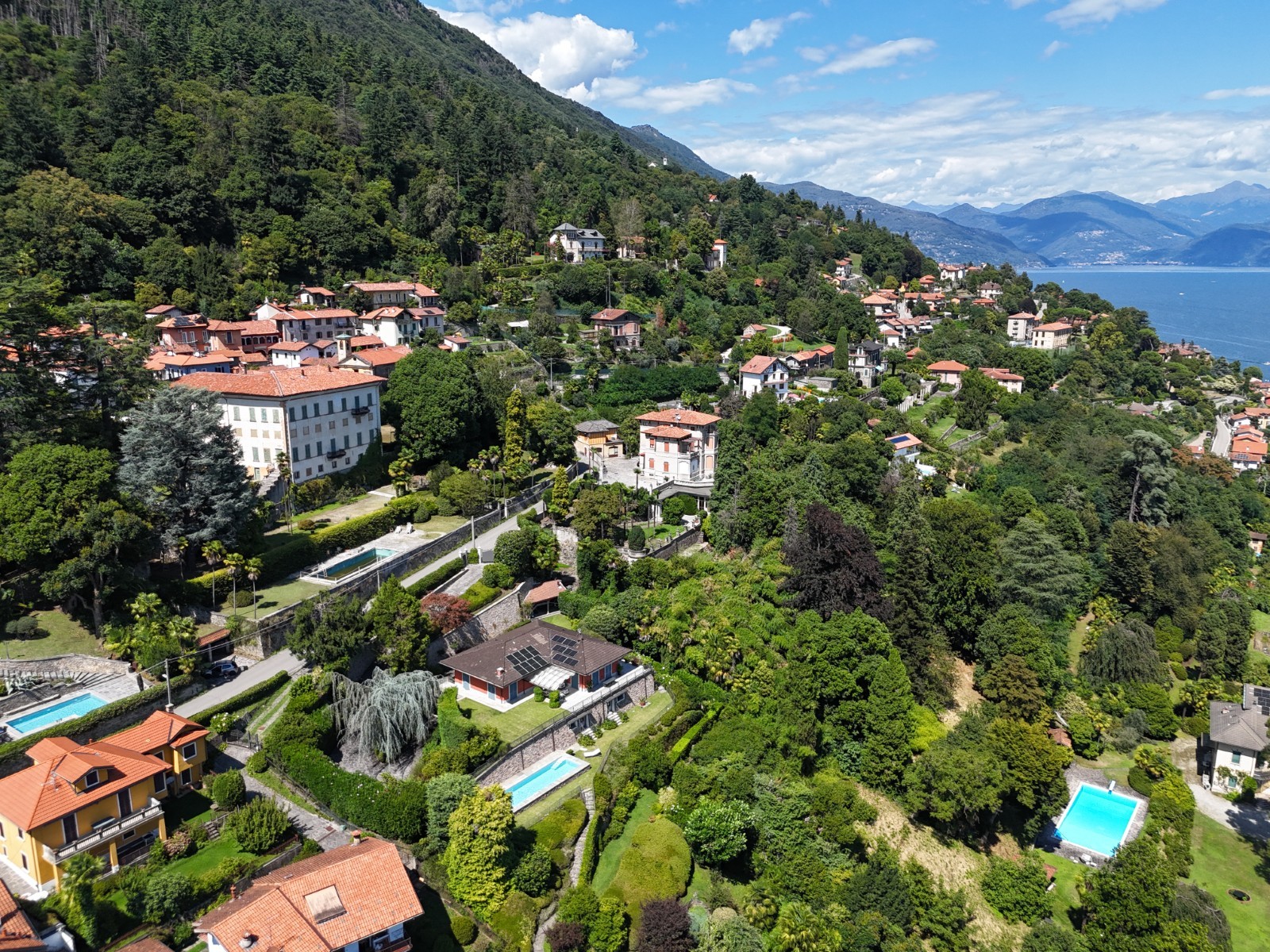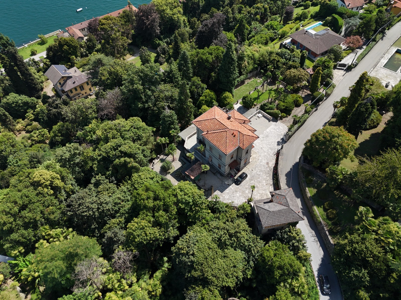 In the hamlet of Frino, in the municipality of Ghiffa, stands this 1930s villa on the shores of Lake Maggiore. The house extends over four floors and currently has nine apartments, common areas, a commercial kitchen and an outbuilding with an area of 100 square meters.