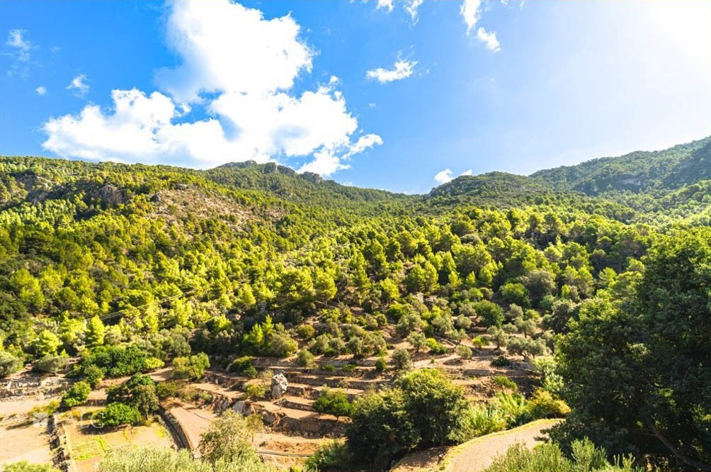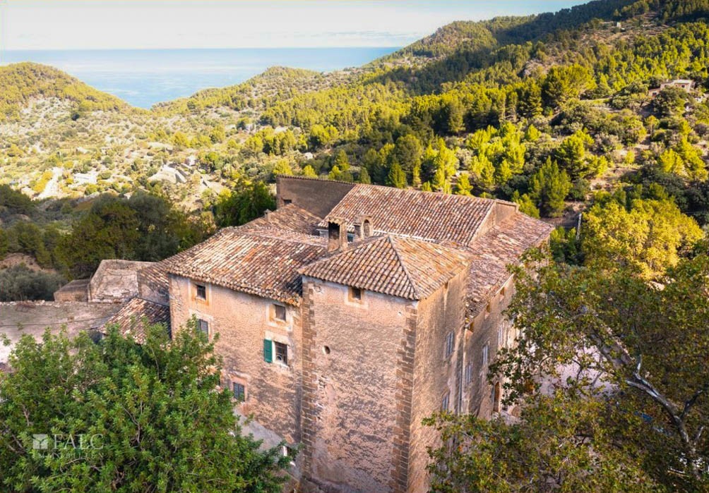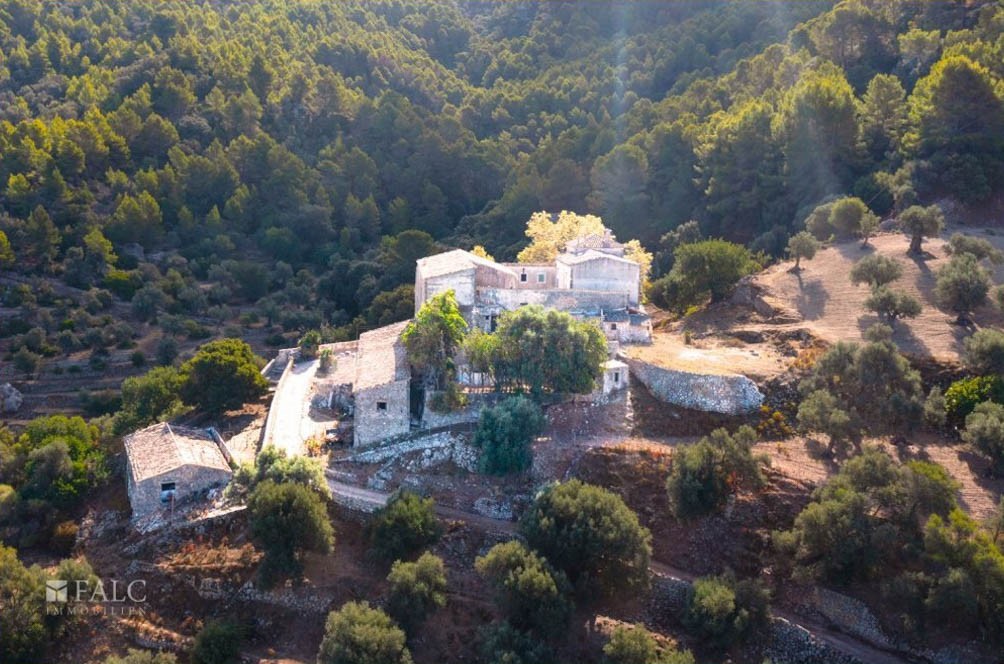 The historic country estate is situated in the heart of the Tramuntana mountains, overlooking the sea, and appears entirely enchanting due to its magical location and enviable views. With its 311 hectares, it is one of the most significant properties in the Tramuntana mountain range, declared a UNESCO World Heritage Site. The focal point of the four-story main building, spanning 1,520 m², is the classical Sa Clastra Patio. This unique noble estate offers a variety of traditional room styles, lounges, outbuildings, cellars, dining rooms, kitchens, a historic defense tower, and a Mediterranean landscape with olive, carob, pine, fruit, and oak trees. The owner of this estate was once obligated, by order of the king, to provide at least two knights with two horses each to notify and protect the king in case of sighting dangers along the coast. The property played a significant strategic role, as it was associated with the Camino Real, the Puigpunyent and Estellencs association. The photos in our presentation depict the current condition and serve the new owner to rejuvenate the interior of the estate and enjoy the fascinating sunset.
