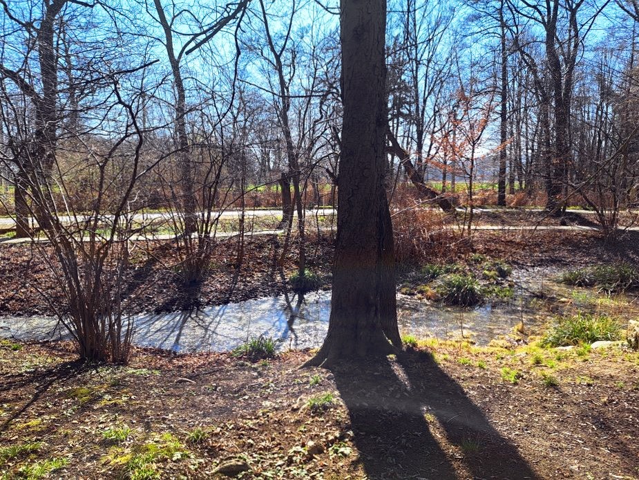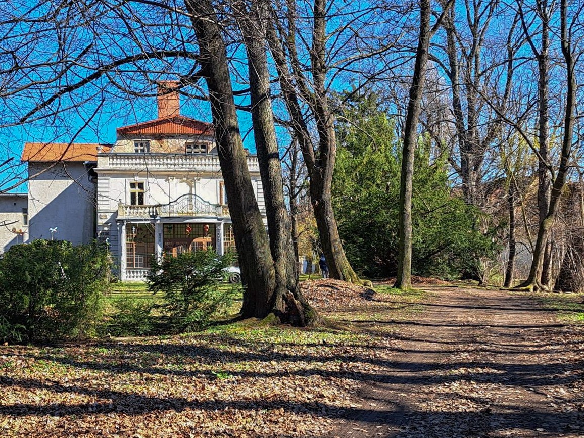 The listed landscape park was created in the 1870s and has been registered as a Polish heritage site since 1986. It features old yew stands a small ornamental pond in the southeast and a central clearing. In the early 20th century conifers were added to the tree population. A fragment of an 18th-century stone wall likely marks the boundary of a former kitchen or orchard garden.