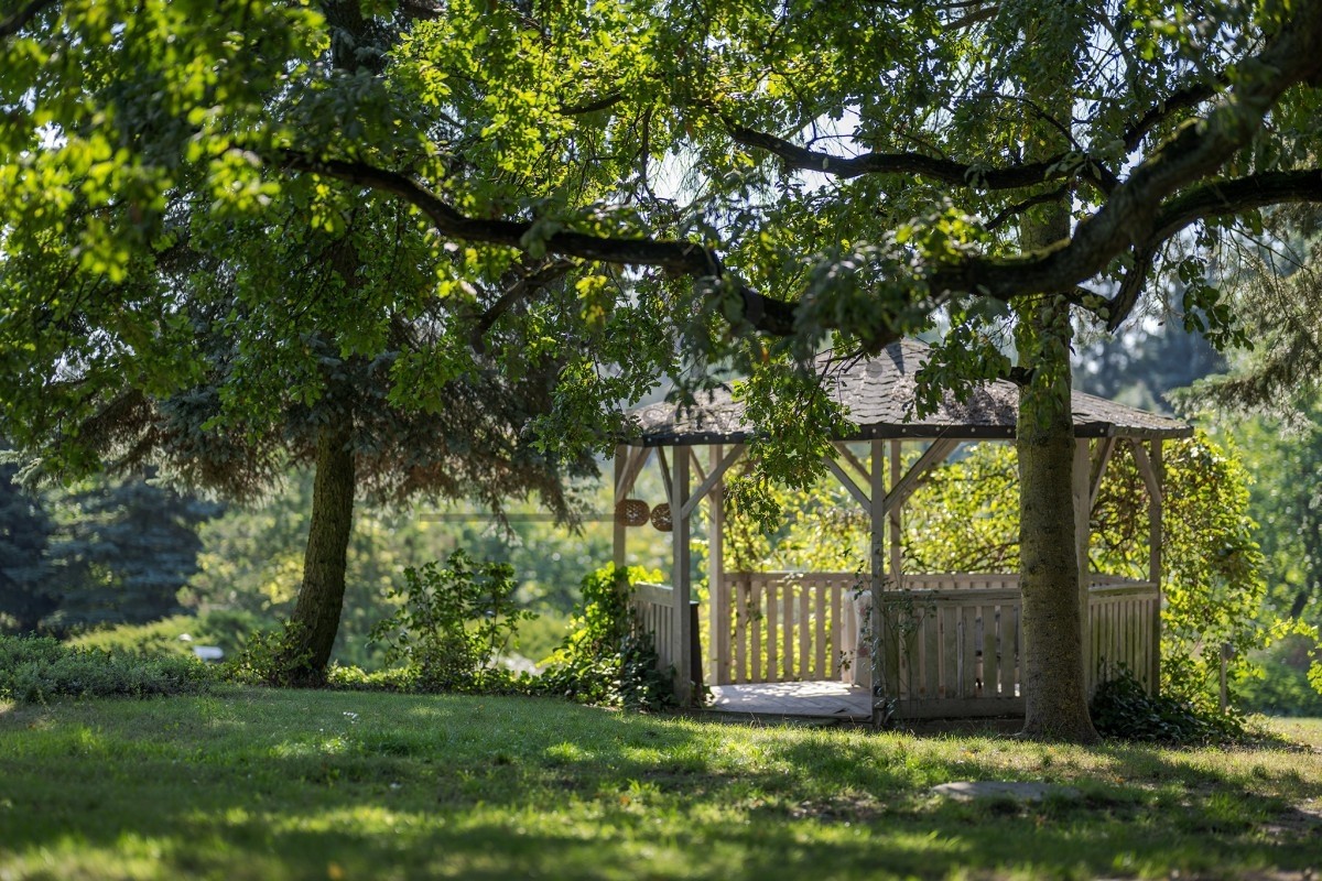 Park, old trees, outdoor swimming pool with covered gazebo, SPA, tennis court, chip & put golf, pond, gazebos.