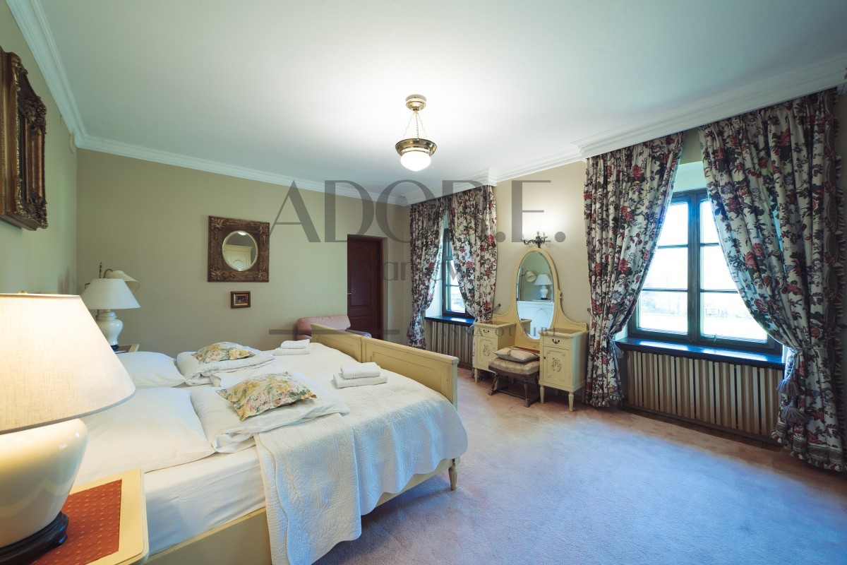 The plot is developed in an excellent way, satisfying the needs of even the most demanding customers. There are such amenities as gazebos, ponds, a multi-functional pitch and an outdoor swimming pool. The property is perfect for a guesthouse, wedding house, retirement home and more. The entire area is fenced (partly with mesh, wooden spans and wooden boards).