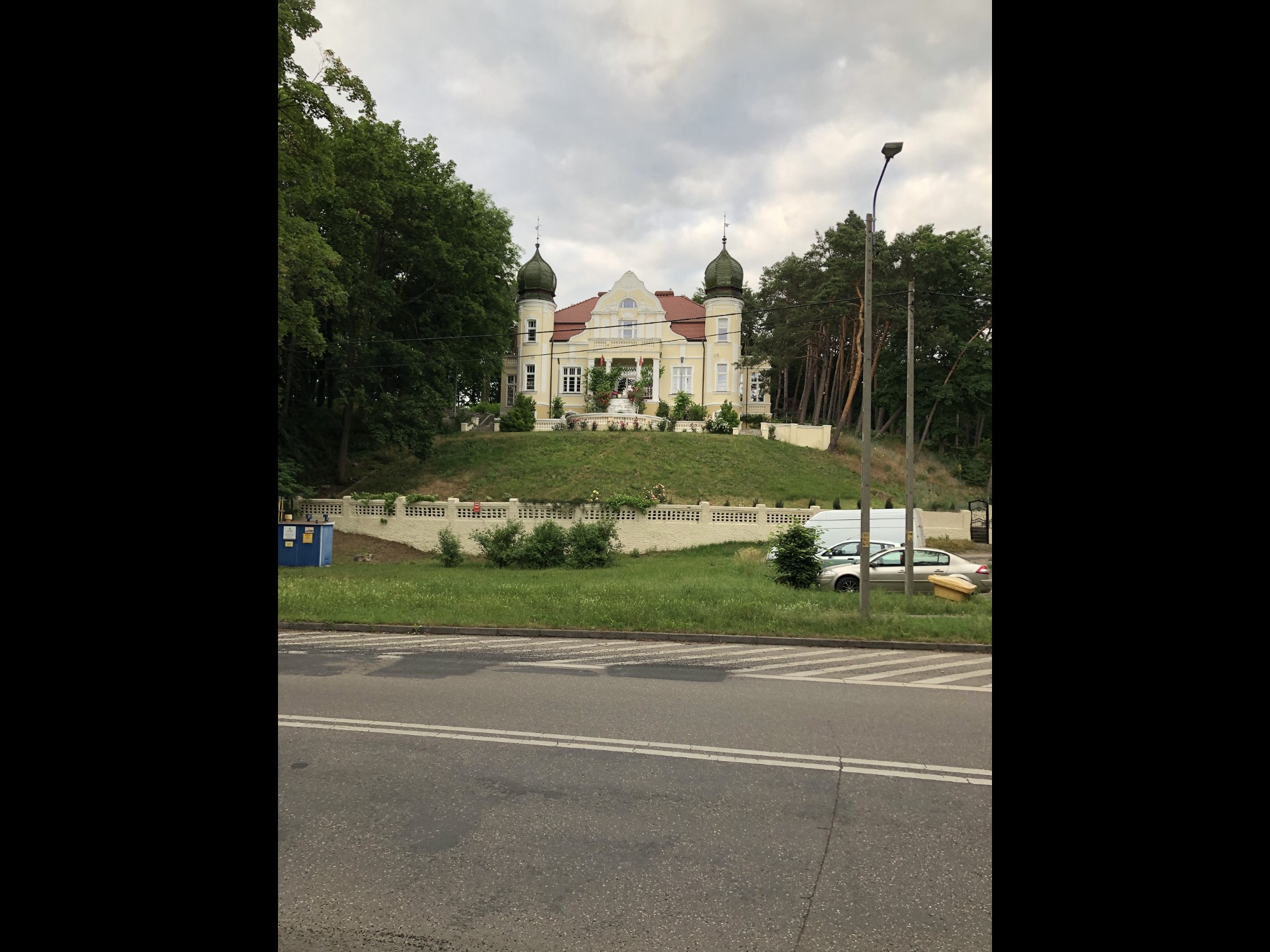 The villa stands in the eastern part of Barlinek, at ul. Strzelecka 23, surrounded by mature trees that gradually merge into a grove stretching beyond the town's edge.