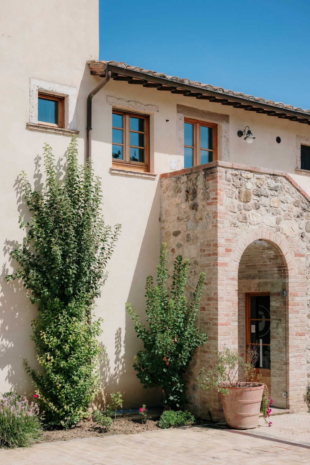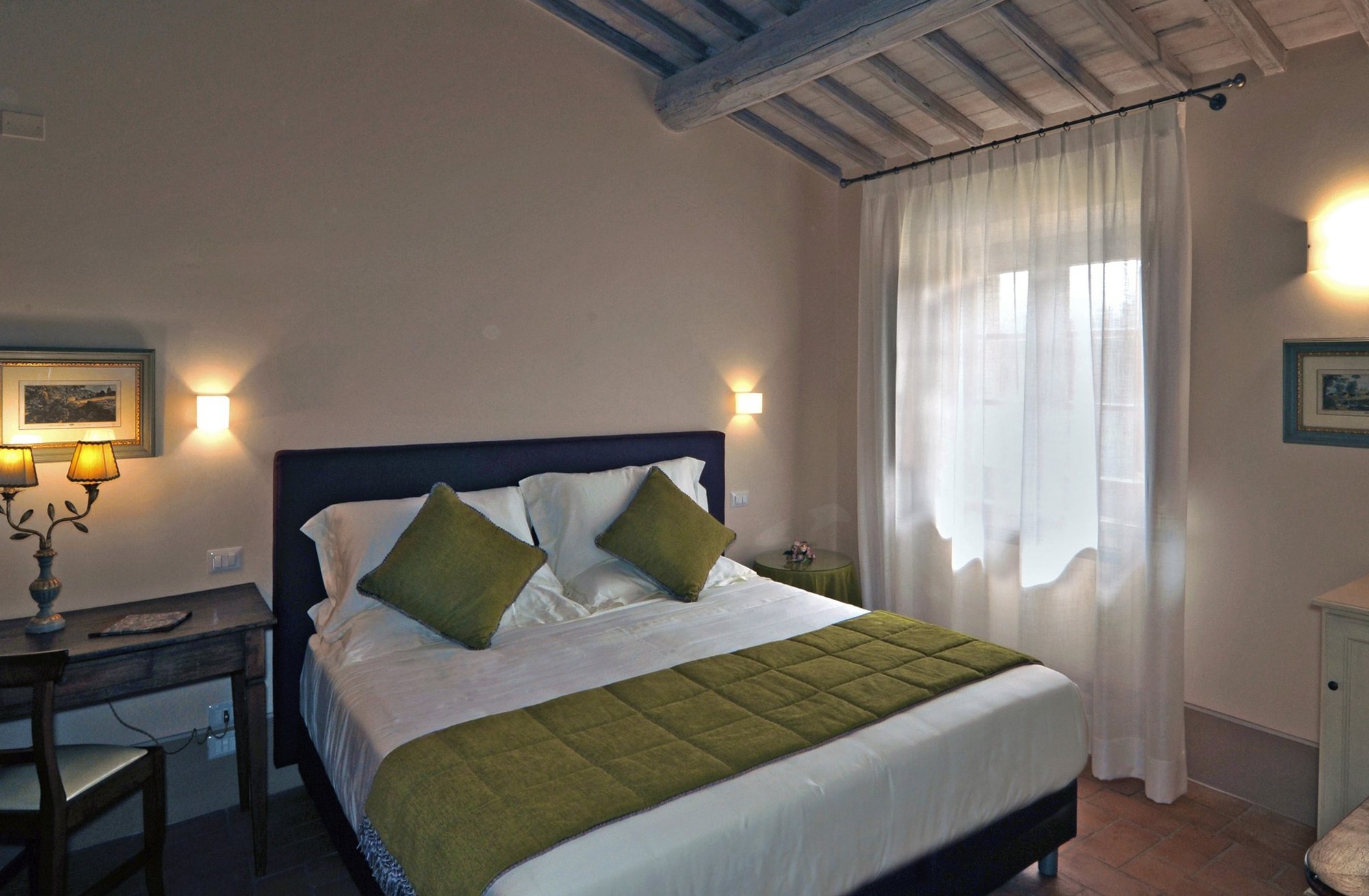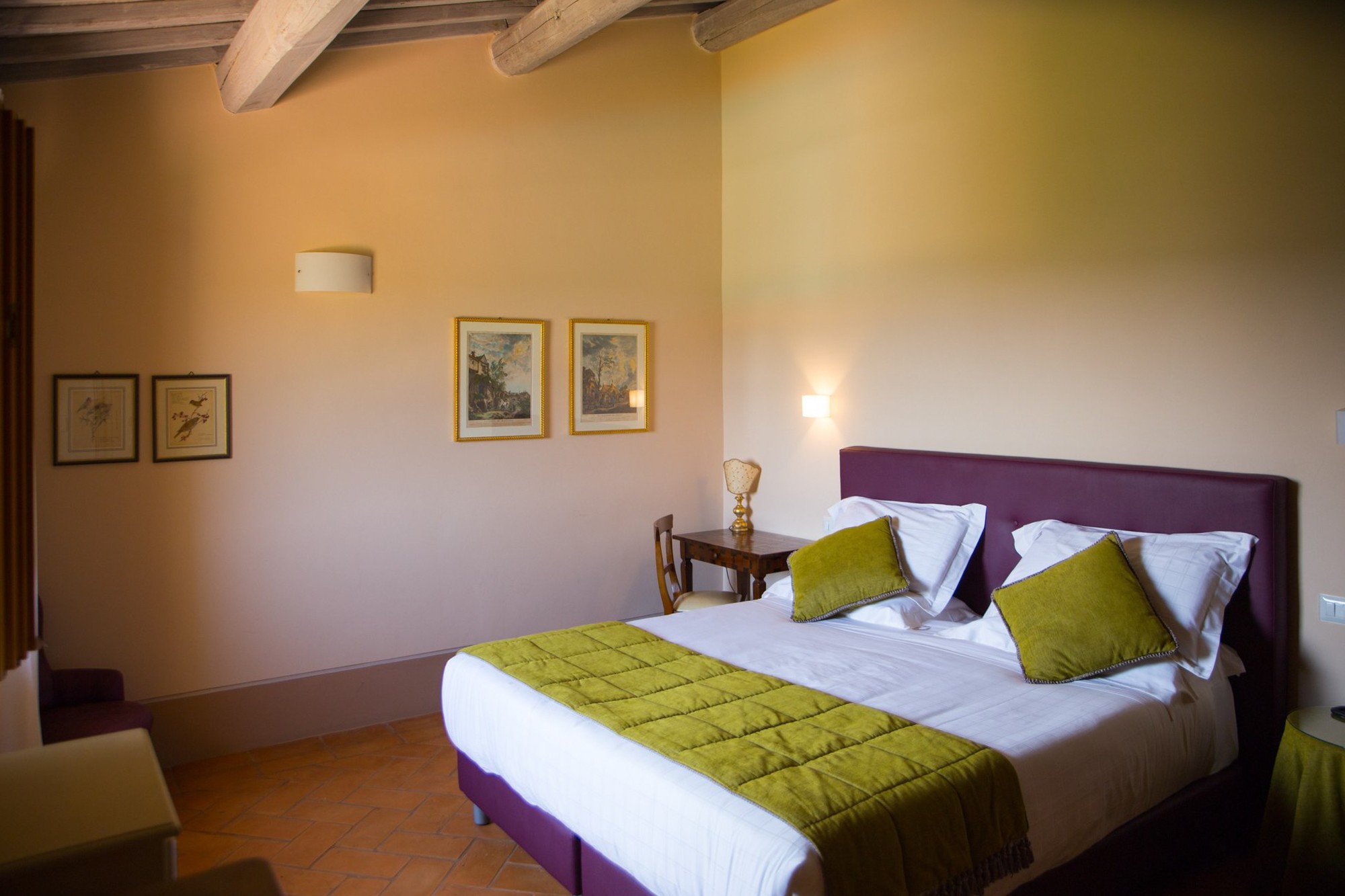 Originally established as a village in the 18th century, the ensemble has been transformed into a boutique hotel. The villa offers 13 double rooms with bathrooms, distributed between the main building (eight rooms) and an annex (five rooms). Interiors feature terracotta floors, exposed wooden beams, and historic furnishings.
