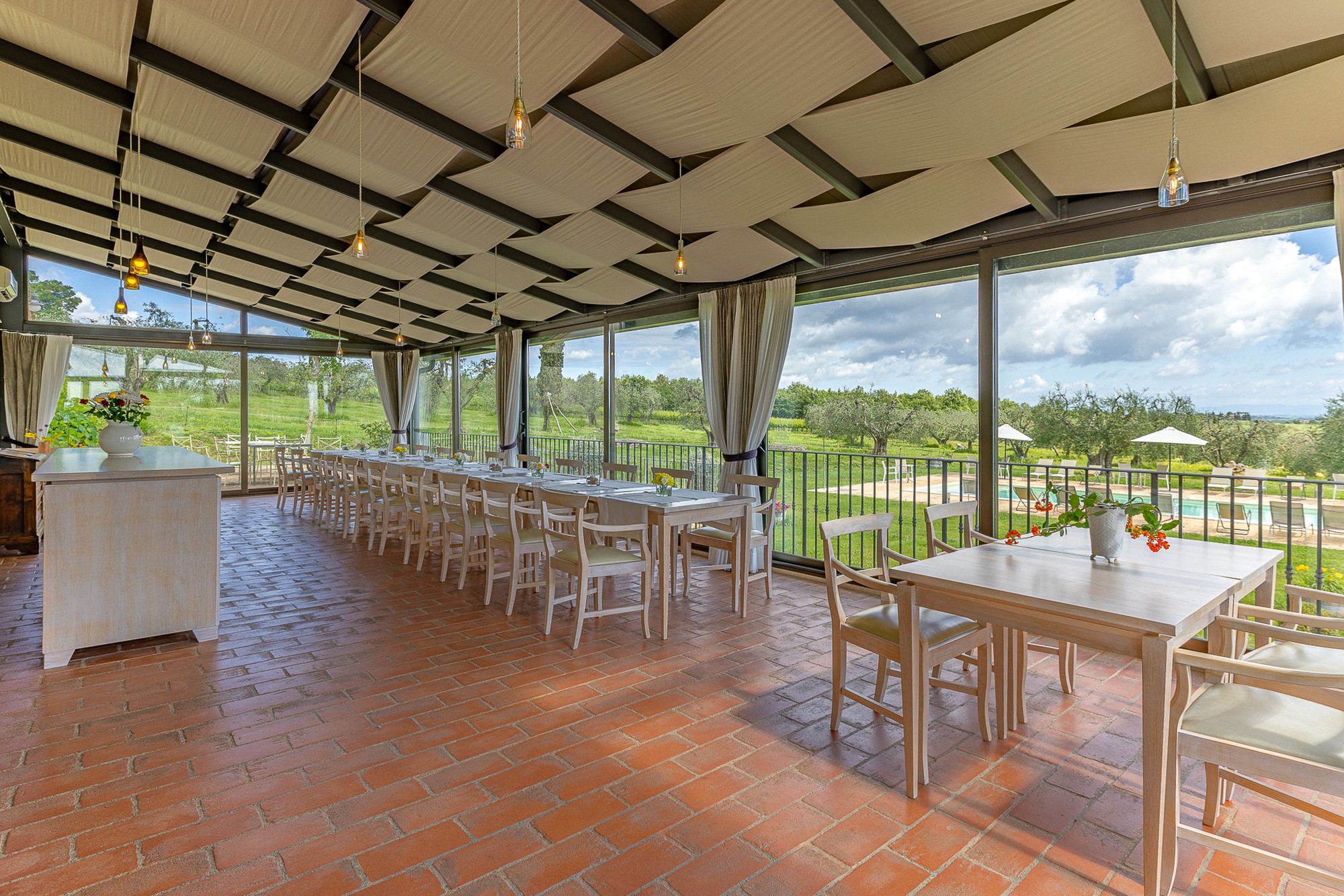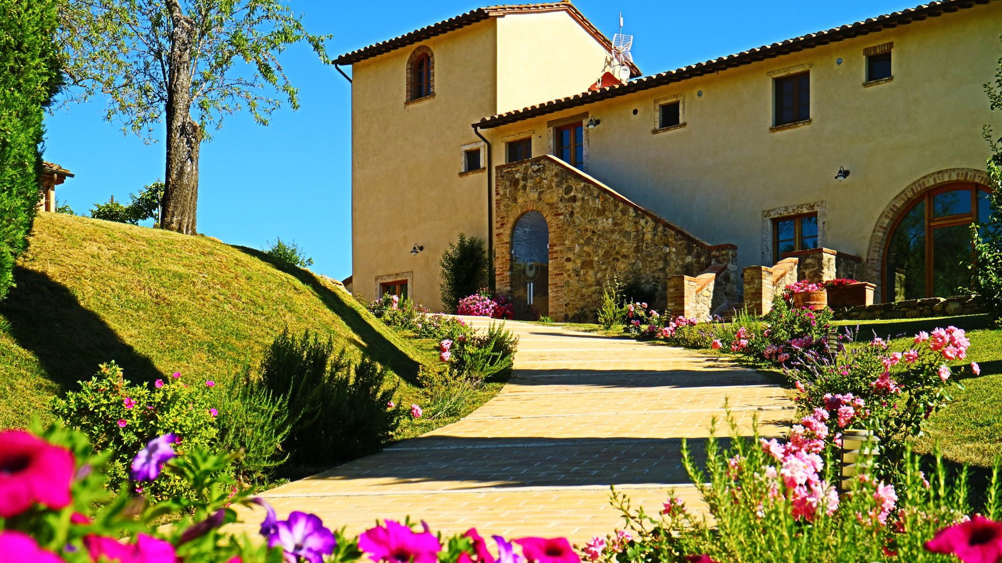 Situated on the border between Tuscany and Umbria, the estate provides access to Montalcino, Pienza, Montepulciano, and Cortona via country roads. Lake Trasimeno is 30 km away, while Florence and Rome are easily reachable thanks to the existing transport infrastructure.