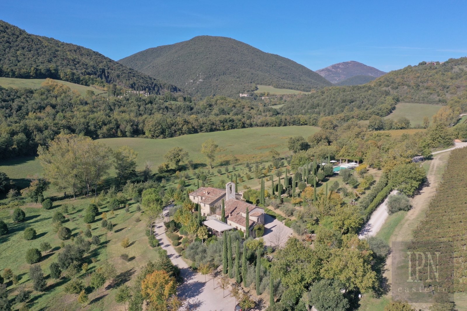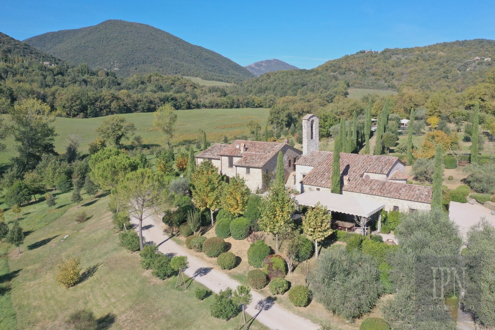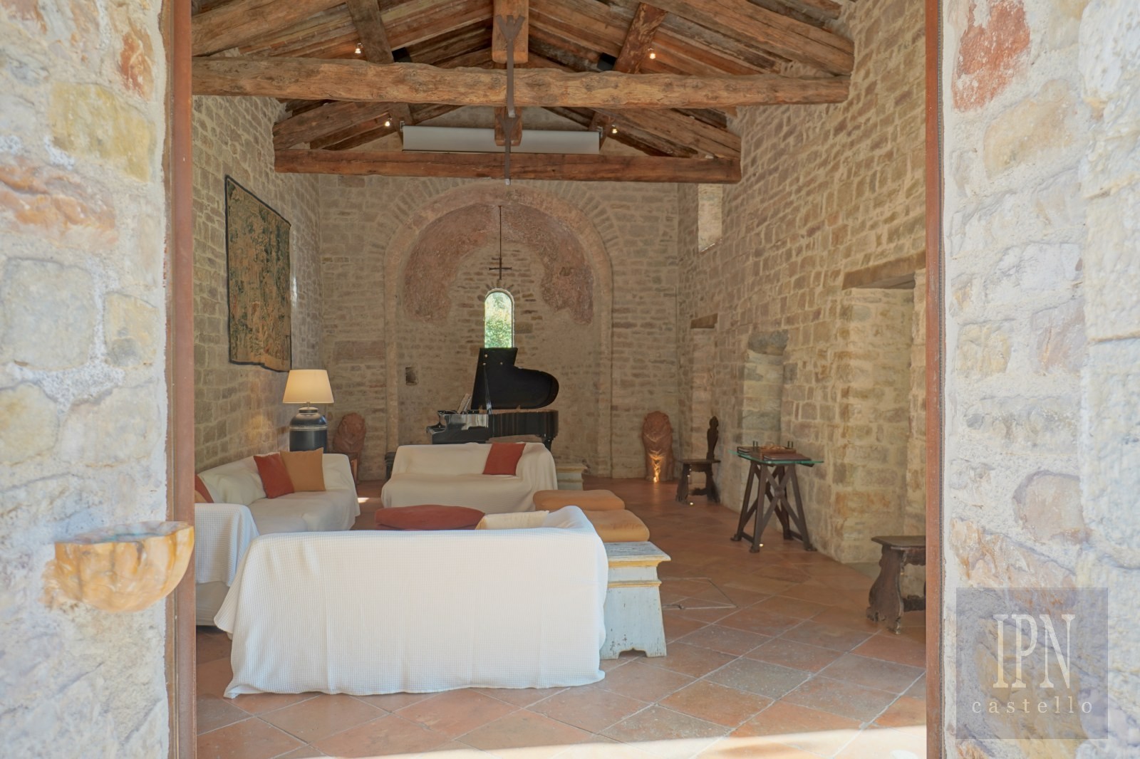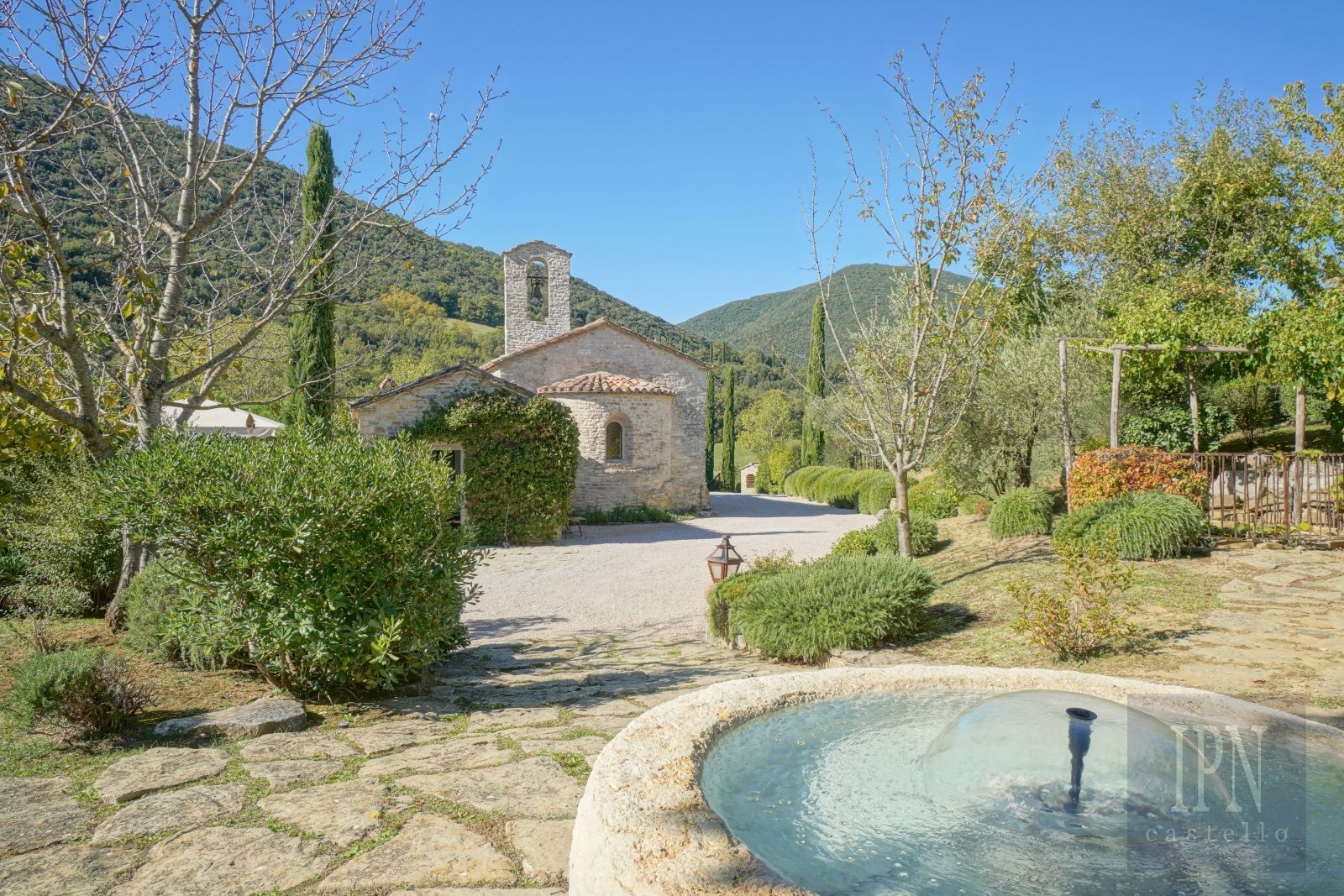 13th Century church and 18th century Farmhouse In Umbria. Nestled in a peaceful Umbrian valley surrounded by meadows, vineyards, olive groves and woodland, This rare and outstanding property sits in a private Estate amongst the vineyards and just a short walk to the Estate winery and first class restaurant, an enchanting countryside retreat that blends deep history with refined comfort. The property consists of an 13th-century church and an 18th-century farmhouse, both lovingly restored to the highest standard. Purchased in 2009 and brought back to life with great care, vision, authenticity representing timeless Italian charm.