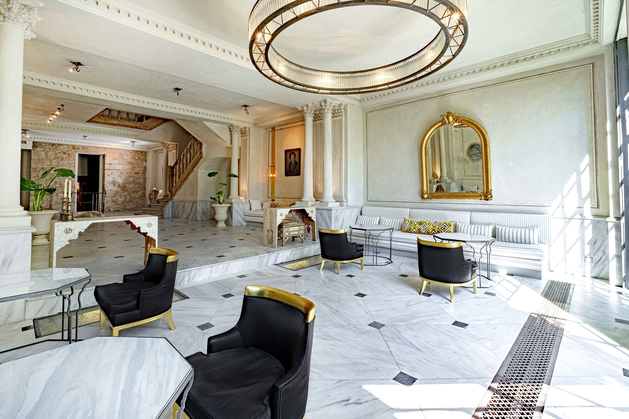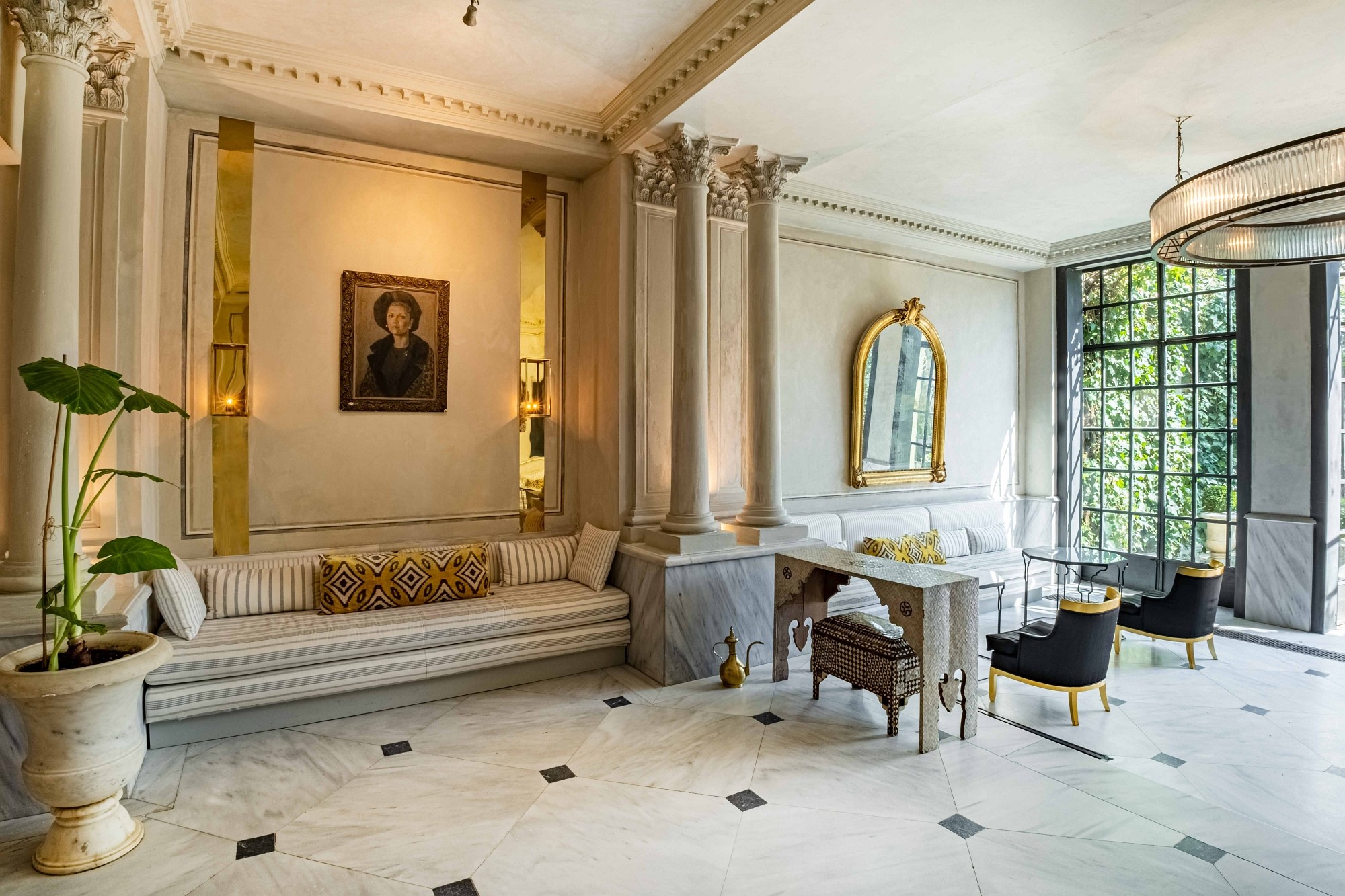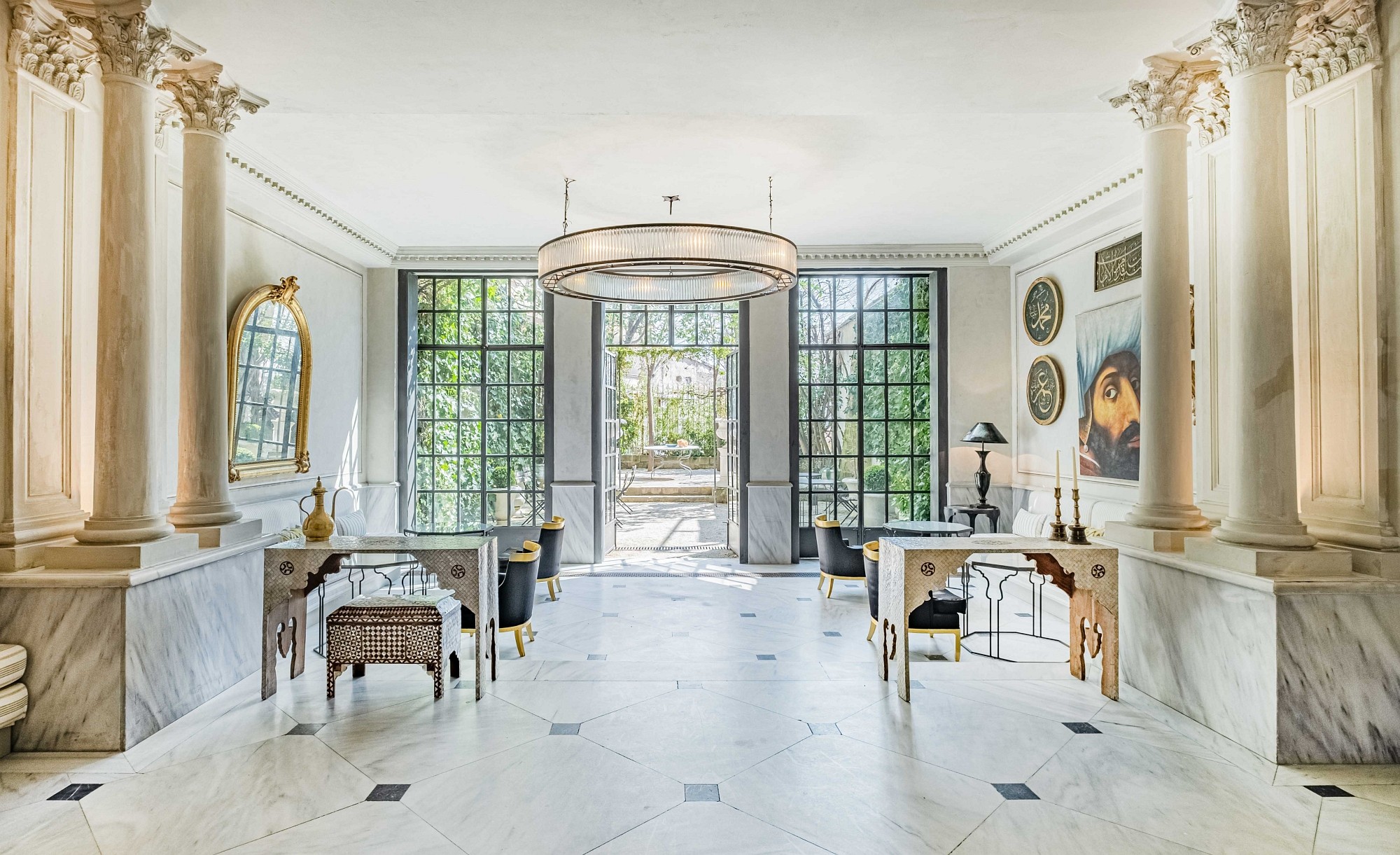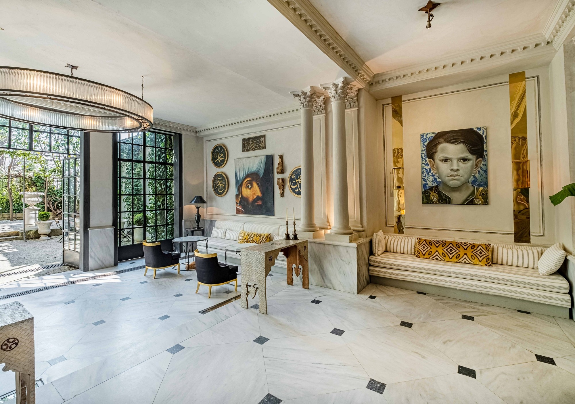 Every inch of Tomtom House exudes luxury and sophistication, from the Marmara marble floors to the handcrafted furniture designed to preserve the original blend of European and Ottoman architecture. With high ceilings, curved handmade staircases, marble, oak wood and stones from the Byzantine period, and a large iron gate opening onto the garden, the building resembles a sultan's palace.