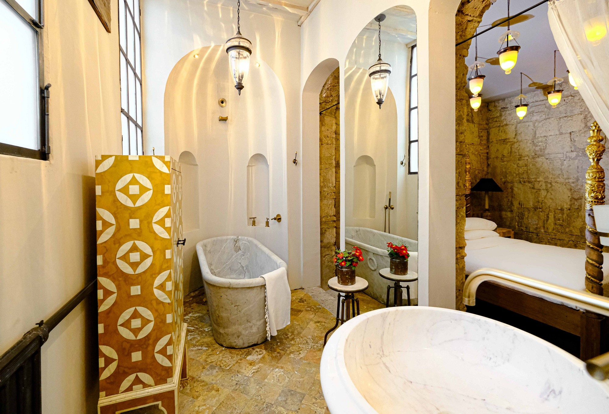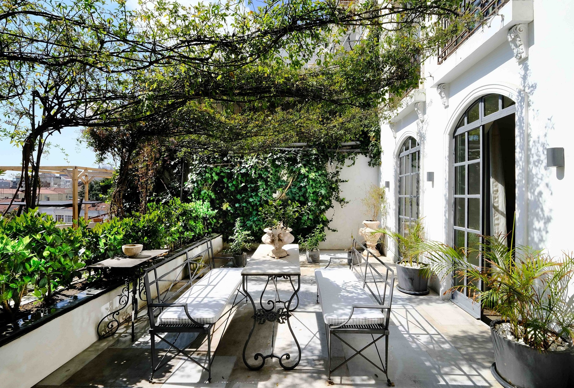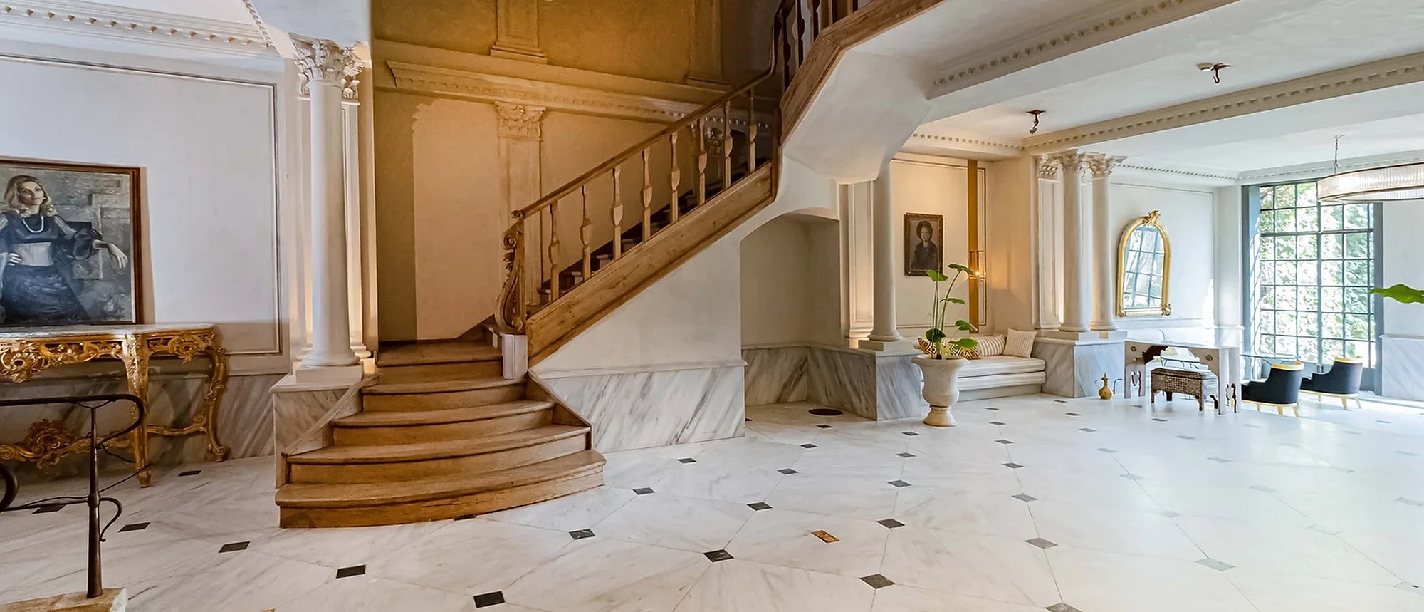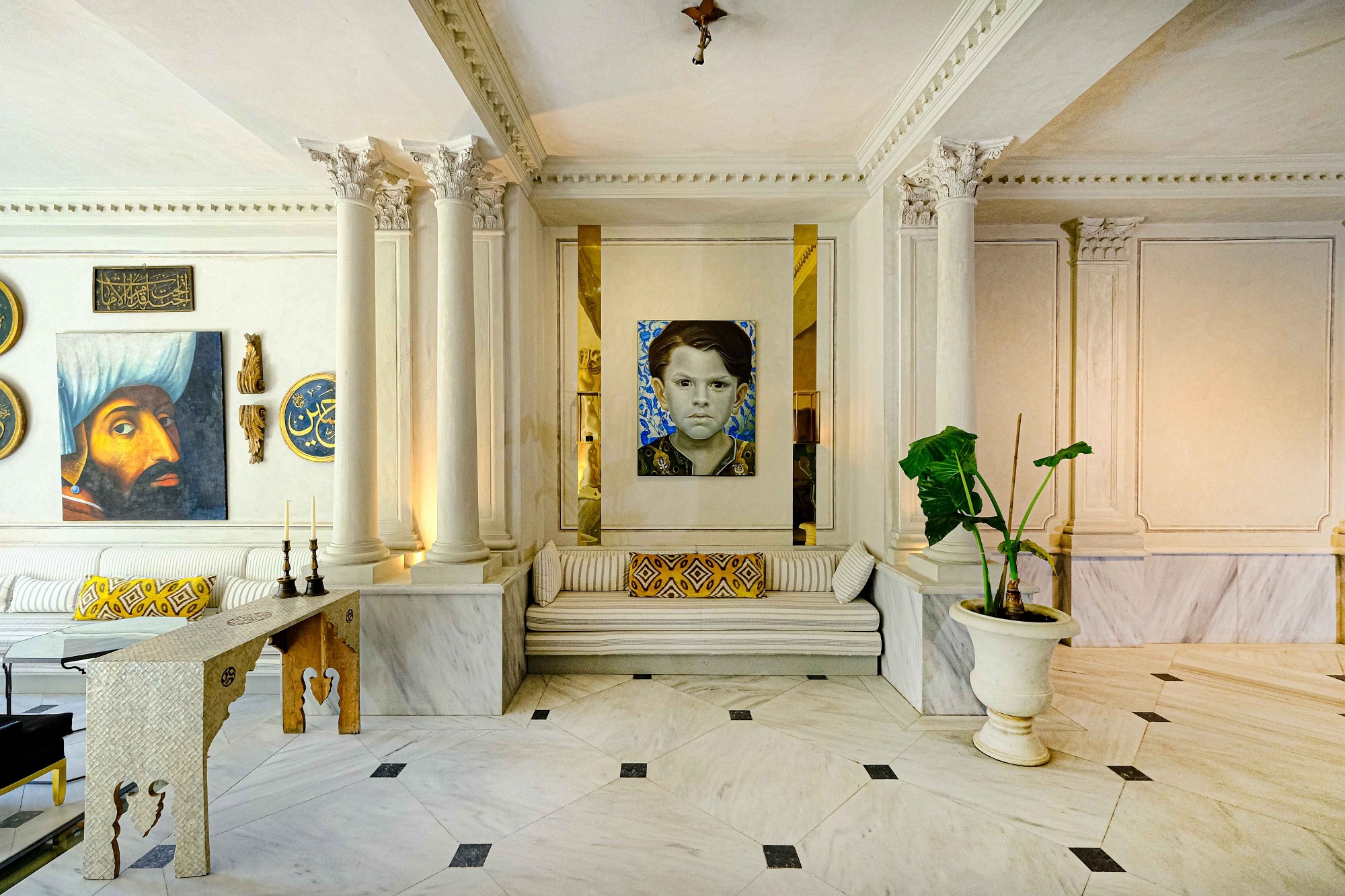 Every inch of Tomtom House exudes luxury and sophistication, from the Marmara marble floors to the handcrafted furniture designed to preserve the original blend of European and Ottoman architecture. With high ceilings, curved handmade staircases, marble, oak wood and stones from the Byzantine period, and a large iron gate opening onto the garden, the building resembles a sultan's palace.