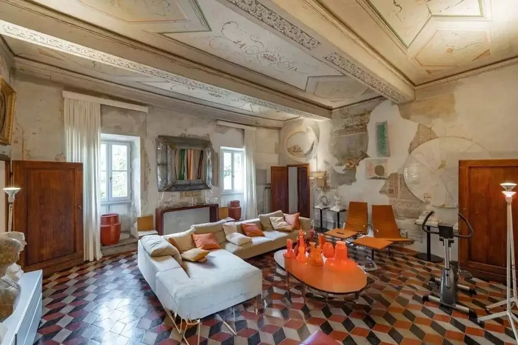 During the most recent restoration, fresco cycles were uncovered decorating the living and reception rooms. The murals feature floral and geometric motifs as well as trompe-l'œil architecture. A cycle depicting the four seasons once existed; part of it was lost due to 19th-century structural changes.