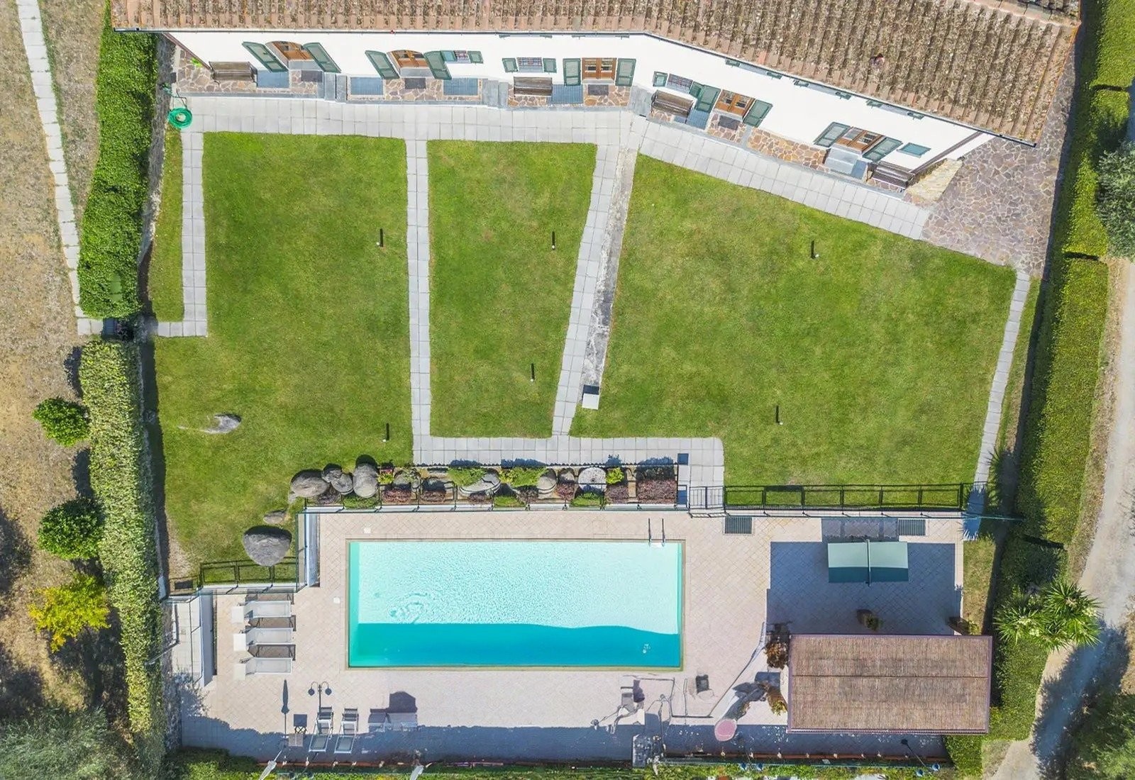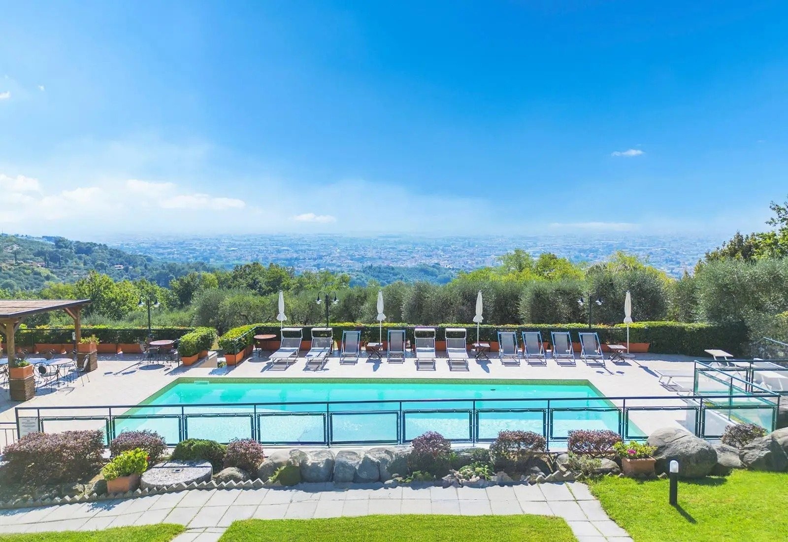 Pool: 5.5 × 12 meters with adjacent solarium terrace overlooking the valley and Montecatini Terme